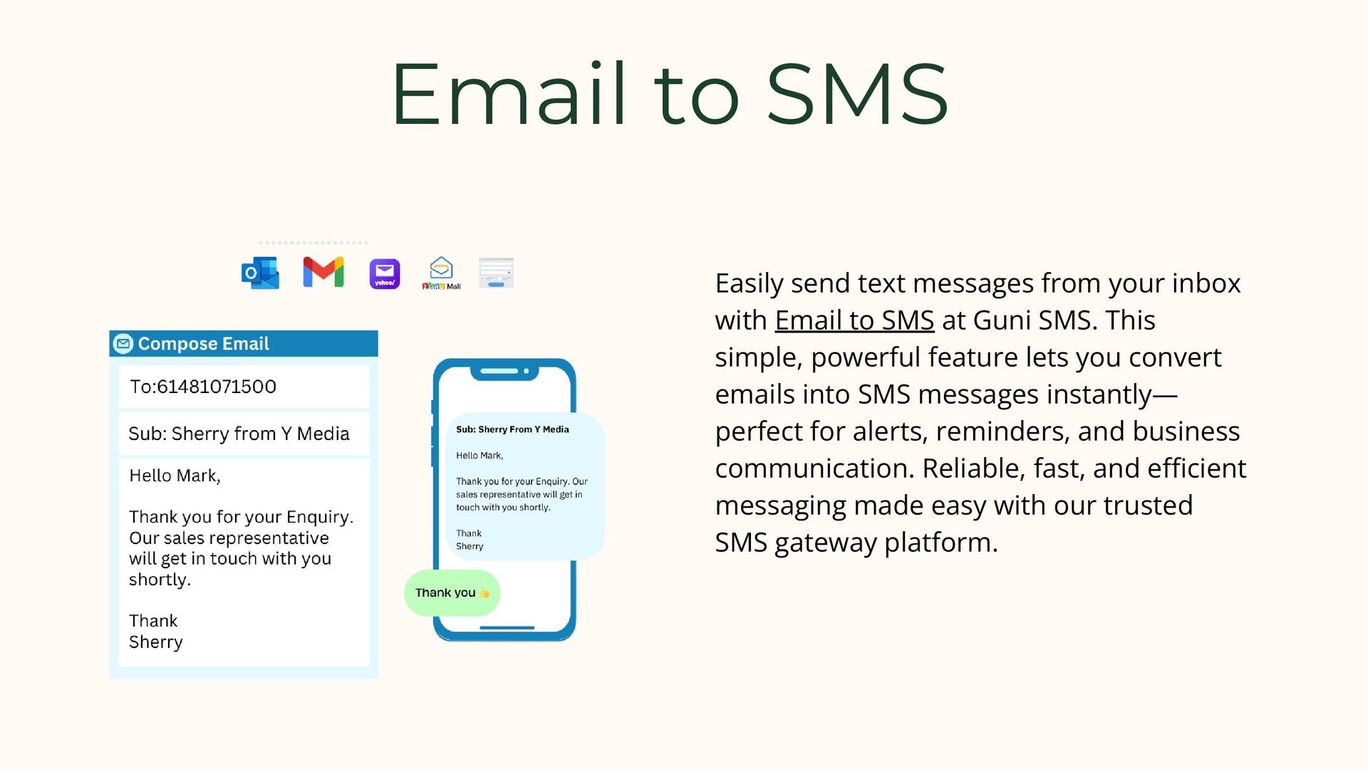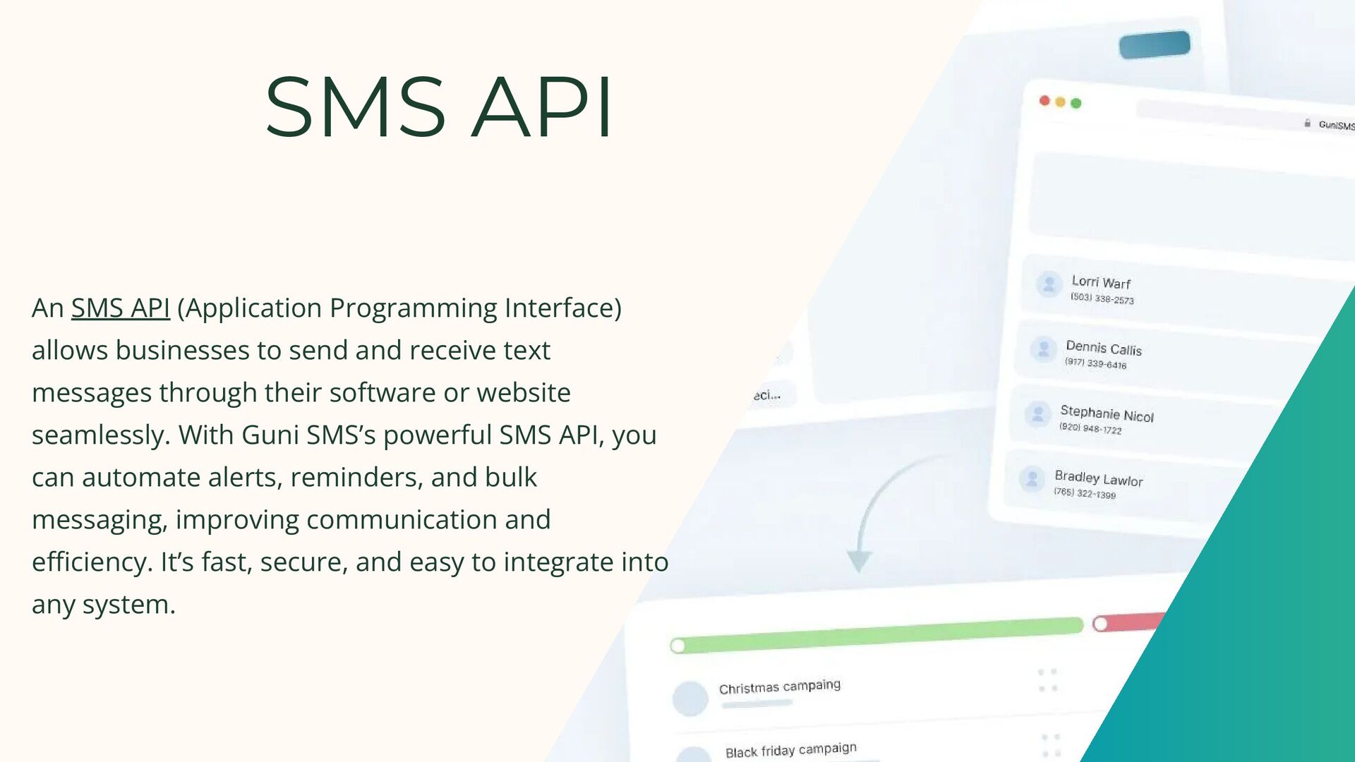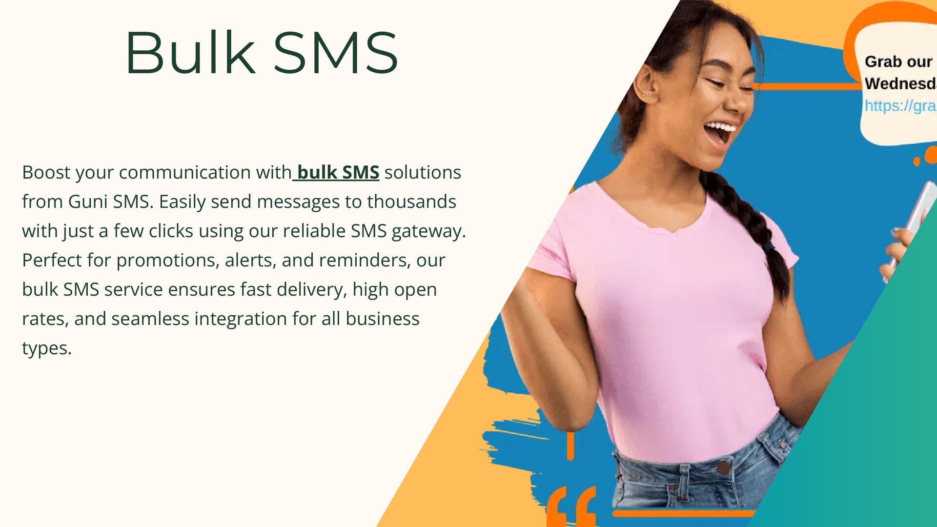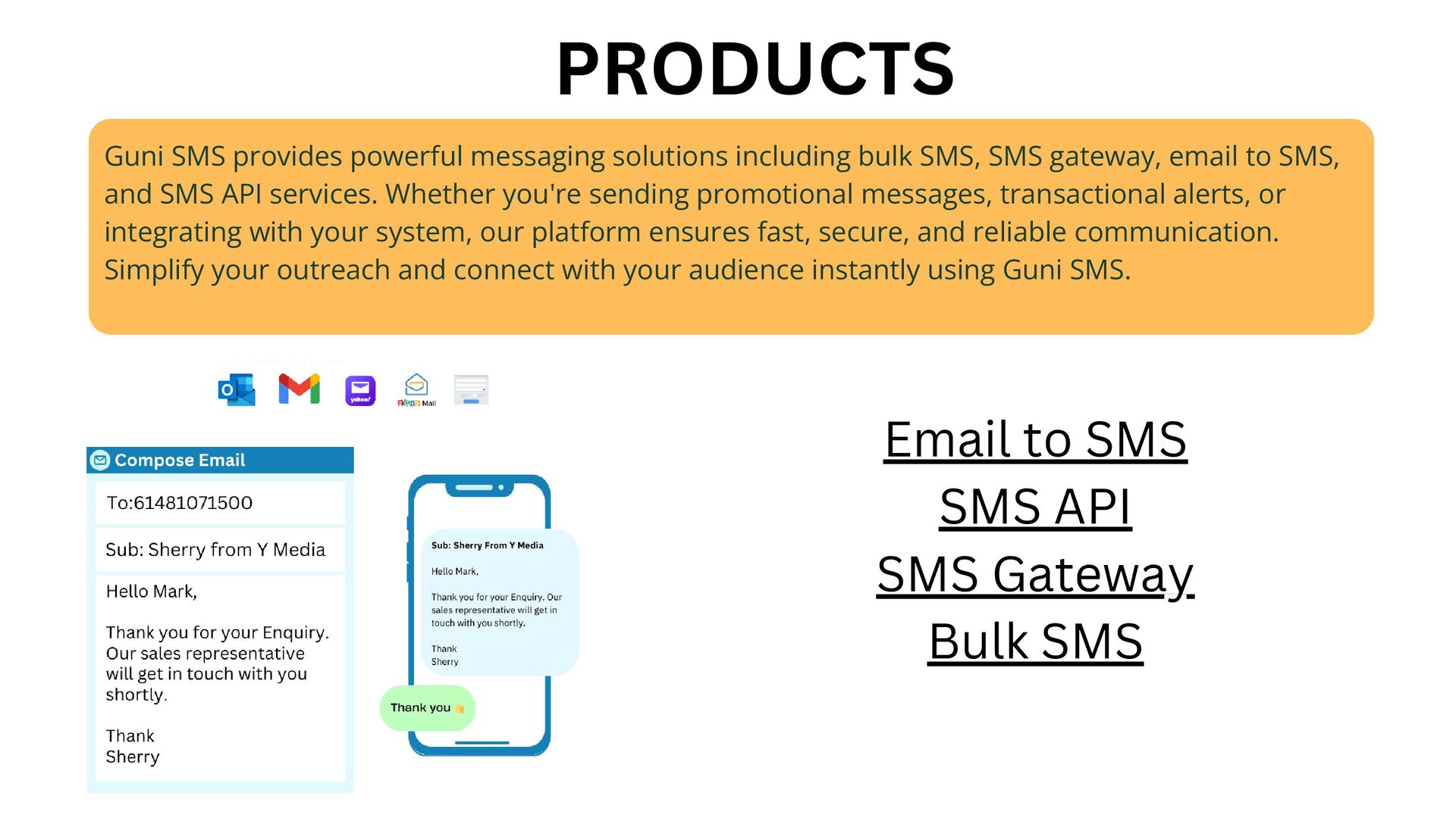 Guni SMS offers a powerful communication platform with reliable SMS gateway solutions tailored for businesses of all sizes. Whether you're sending bulk SMS campaigns, integrating with your system using our robust SMS API, or leveraging email to SMS functionality for seamless communication, Guni SMS ensures fast delivery and maximum reach. With easy-to-use tools and advanced features, we help you stay connected with your audience through smart and scalable messaging solutions.