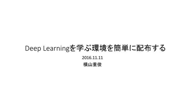 Deep Learningを学ぶ環境を簡単に配布する 2016.11.11 横山重俊