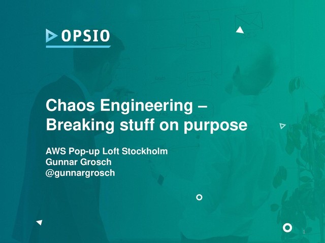 private and hybrid cloud platforms. • Expertise, quality, cost-effectiveness and automation pervade our delivery of critical business IT operations. • Delivering everything from magical customer support to fully managed cloud services. • Implementing chaos engineering for customers. ABOUT OPSIO AWS Pop-up Loft Stockholm @gunnargrosch
