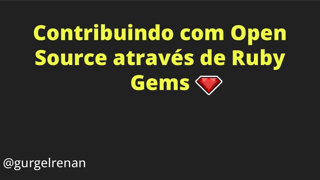 A ideia da talk é ensinar métodos simples e práticos para os primeiros passos para quem está interessado em ajudar projetos open source, usando como exemplo 4 Ruby gems.