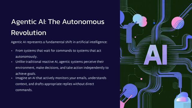 Agentic AI represents a fundamental shift in artificial intelligence. Unlike traditional reactive AI, agentic systems perceive their environment, make decisions, and take action independently to achieve goals.