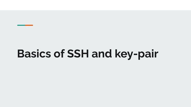 key pair includes two keys: public key and private key ◦ Public Key ▪ copy into the server, specifically in authorized_key file. ◦ Private Key ▪ Remains only to user ▪ It is the proof of the users’ identity ▪ Also known as identity key • most common algorithm are RSA • New algorithm is used: Ed25519 5