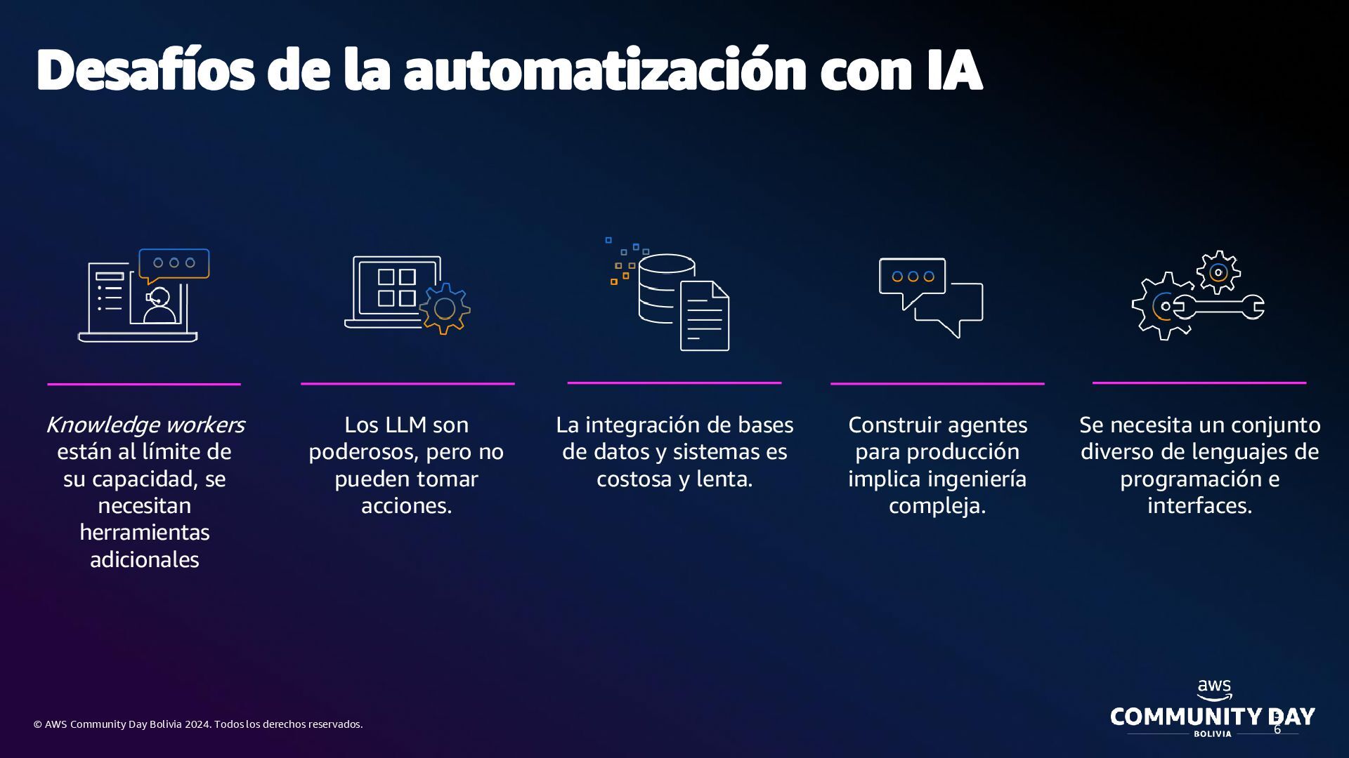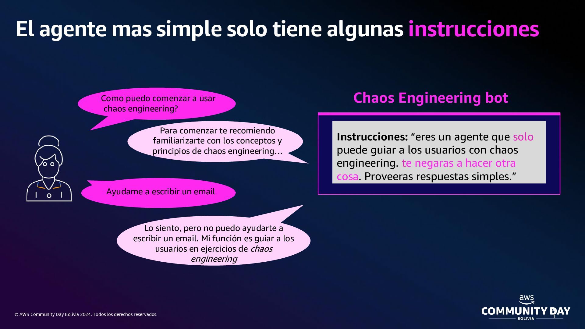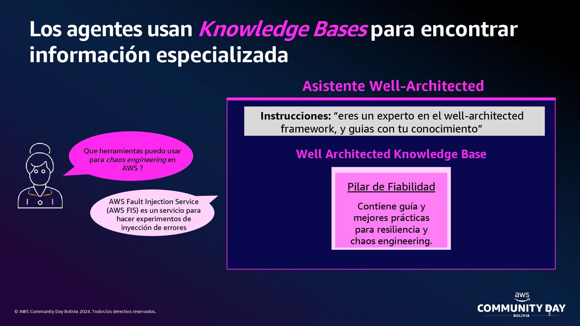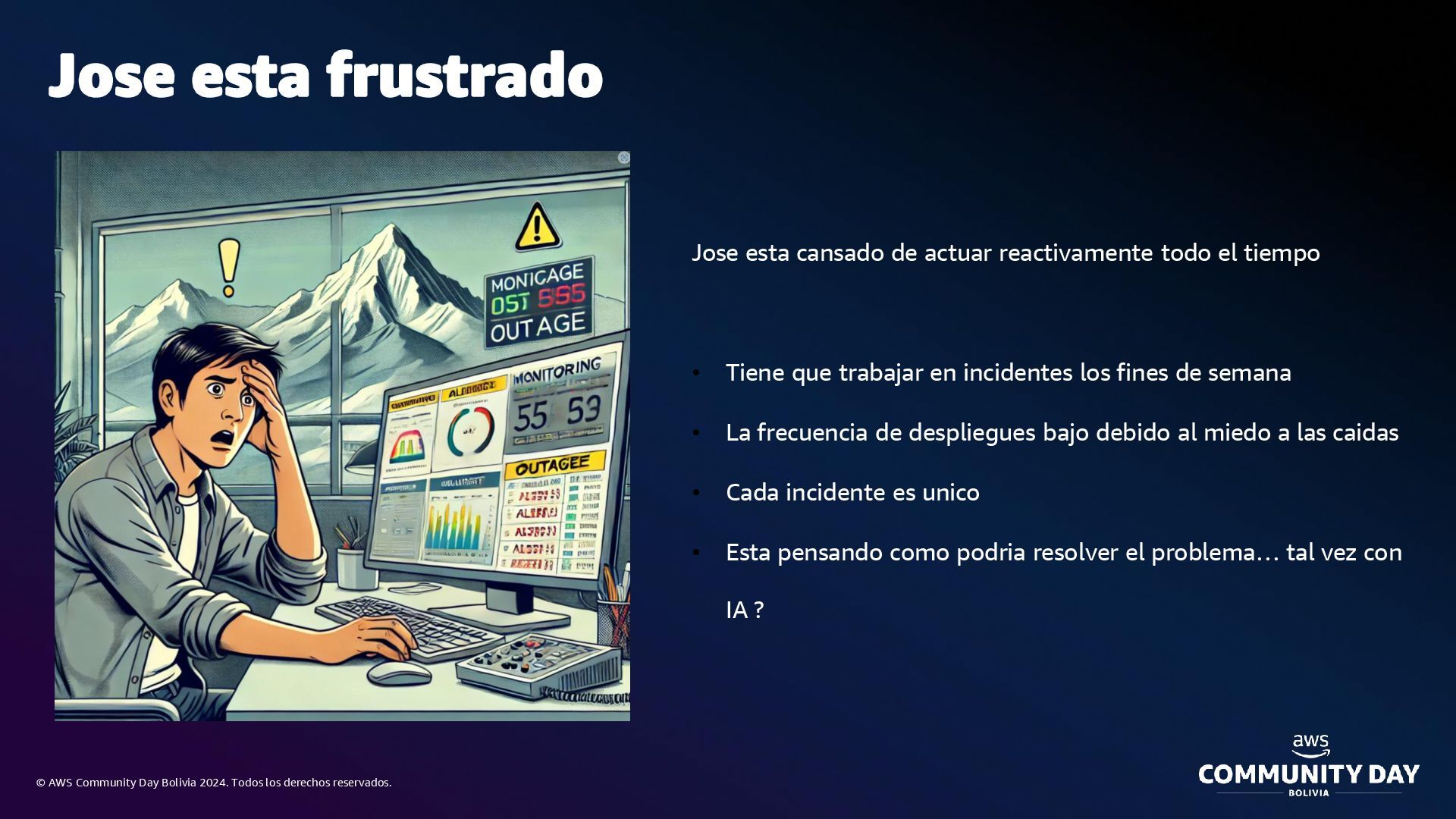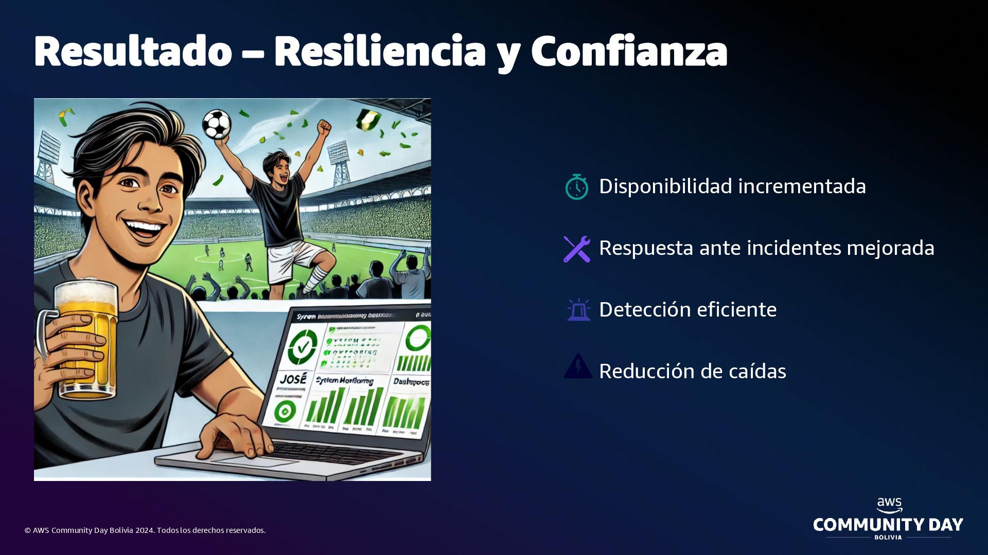 Presented at the AWS Community Day Bolivia 2024, where I introduced the Chaos Engineering process, walked through AWS Fault Injection Service experiment templates, and demonstrated how Amazon Bedrock–powered agents can automate resilience testing through a demo.