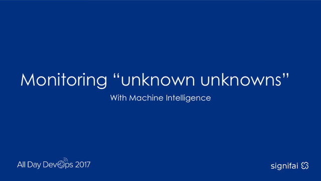 Gave this talk at AllDaysDevOps 2017. A few real-world examples where not knowing what you don’t know led to massive outages and service disruptions. How despite the fact that modern DevOps teams have multiple monitoring tools, hundreds of metrics instrumented and are capturing billions of data points…downtime still happens. How about instead of implementing more monitoring, we bring forward a future where DevOps teams can augment their existing tooling with AI and machine learning to draw richer correlations across events, metrics and logs to surface insights about threats to uptime that aren’t even being monitored. Or put another way, how DevOps teams can get closer to a state of “known knowns!”
