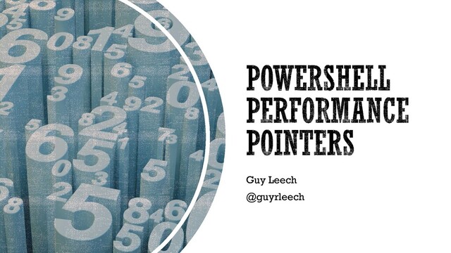 up individually/once? ▪ Get-ADUser ▪ Get-BrokerMachine ▪ But what is the memory overhead? ▪ Be selective what properties are cached ▪ Trim own working set ▪ Destroy unused data/variables ▪ [gc]::Collect() ▪ Hashtable or array ? ▪ Unique key ? ▪ Hashtable of arrays ▪ Sort ? ▪ Most likely to be accessed near the start ▪ Binary search via index ? ▪ Number of elements ▪ .Where() versus Where-Object ▪ .Where takes optional count x, for where-object pipe through Select-Object –First x ▪ [System.Management.Automation.WhereOperatorSelectionMode] @guyrleech