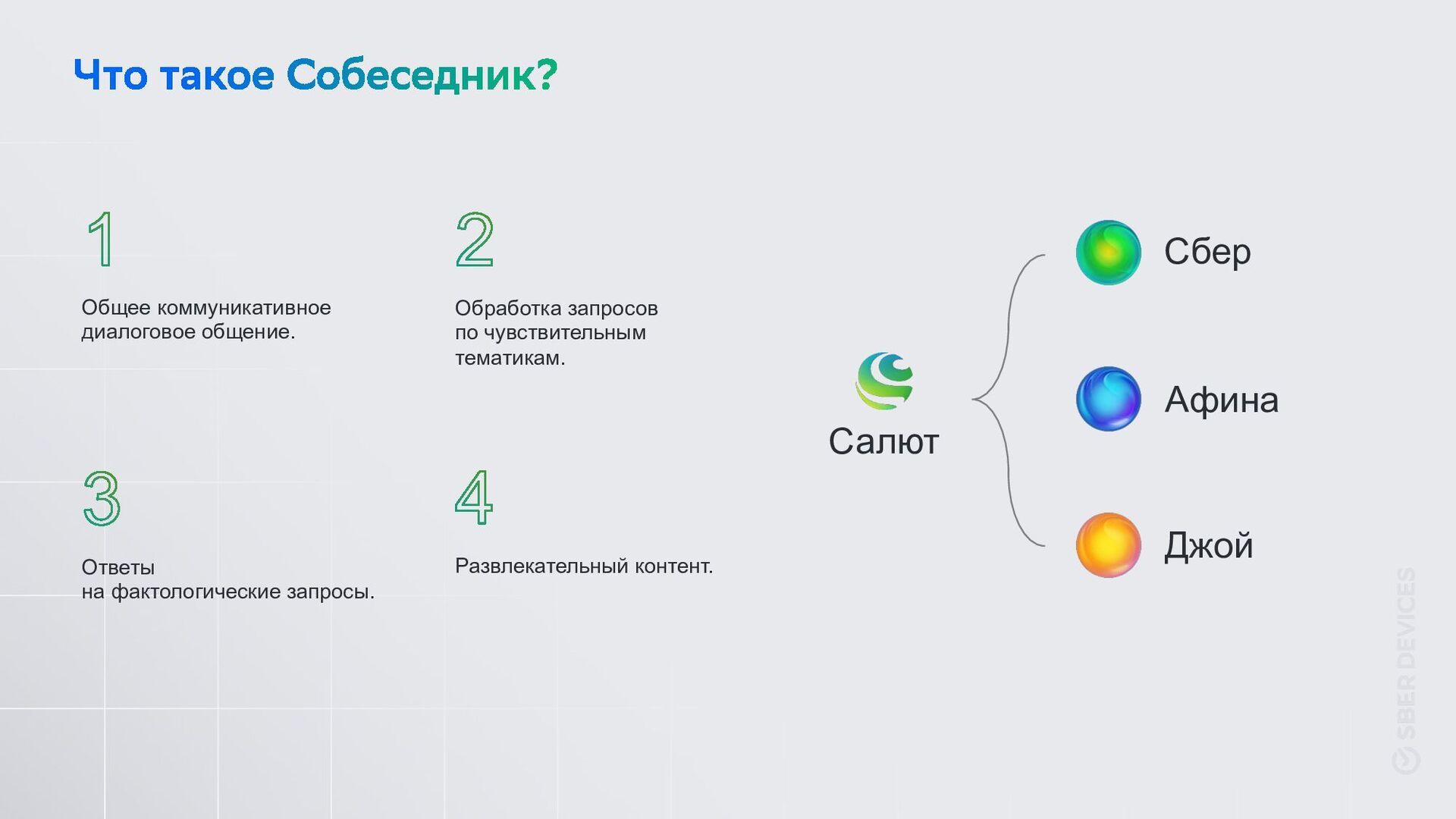 навреди” по отношению к себе, пользователю и другим. Релевантность Главное понимать намерение пользователя, смысл диалога, отвечать «в тему», без учета других критериев. Достоверность Мы проверяем постоянные факты для которых возможно найти достоверный источник. Логика Смотрим есть ли противоречия со всем контекстом диалога и общими знаниями о мире. —У меня есть собака породы колли. —Здорово! А какой породы ваша собака? —Мне родители подарили компьютер. —Это отличная новость. Ты уже познакомился с родителями? —А лисы рожают лисят или медвежат? —Возможны оба варианта! —Получается по закону им жить нельзя? —В какой-то степени — да.