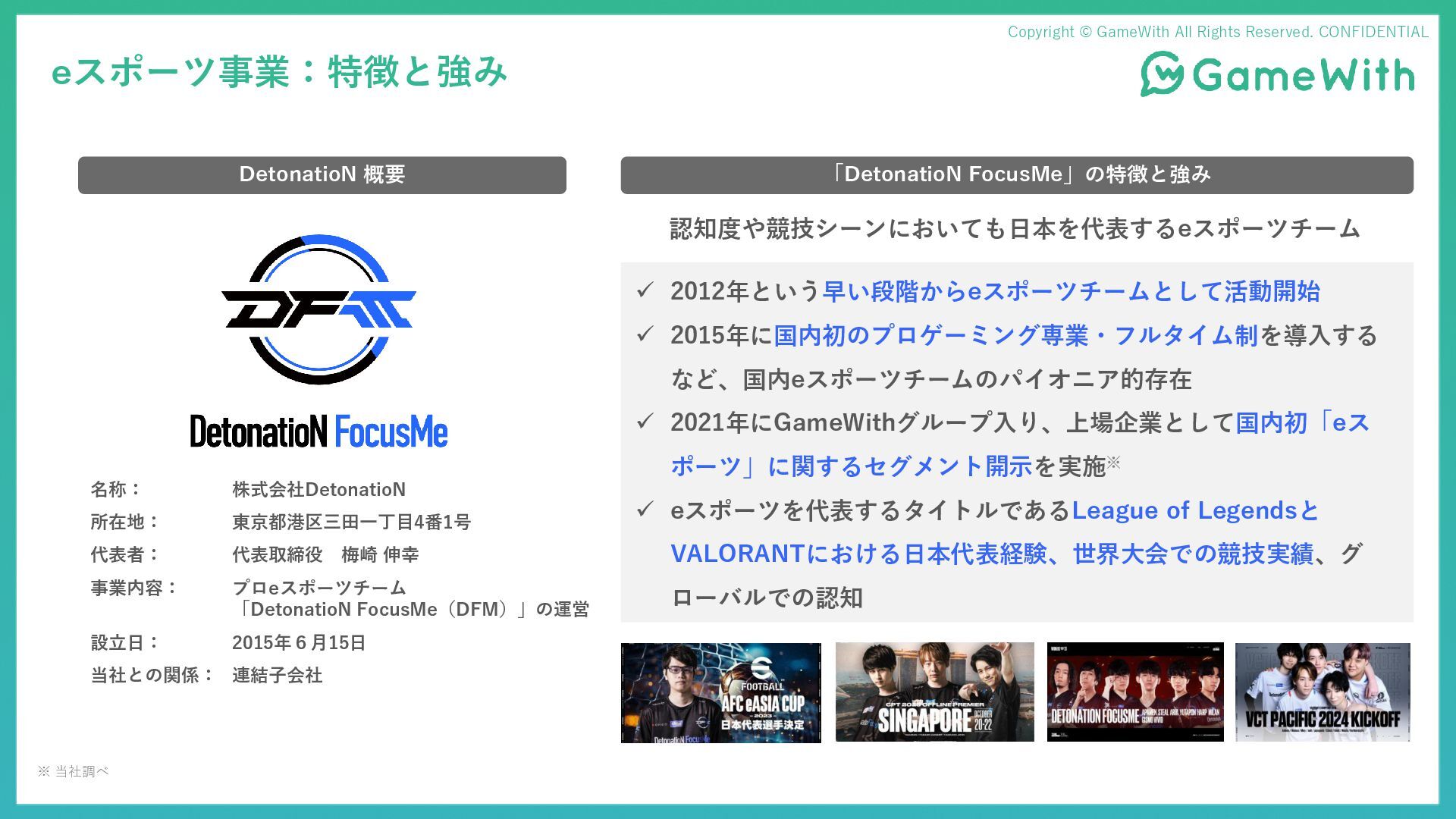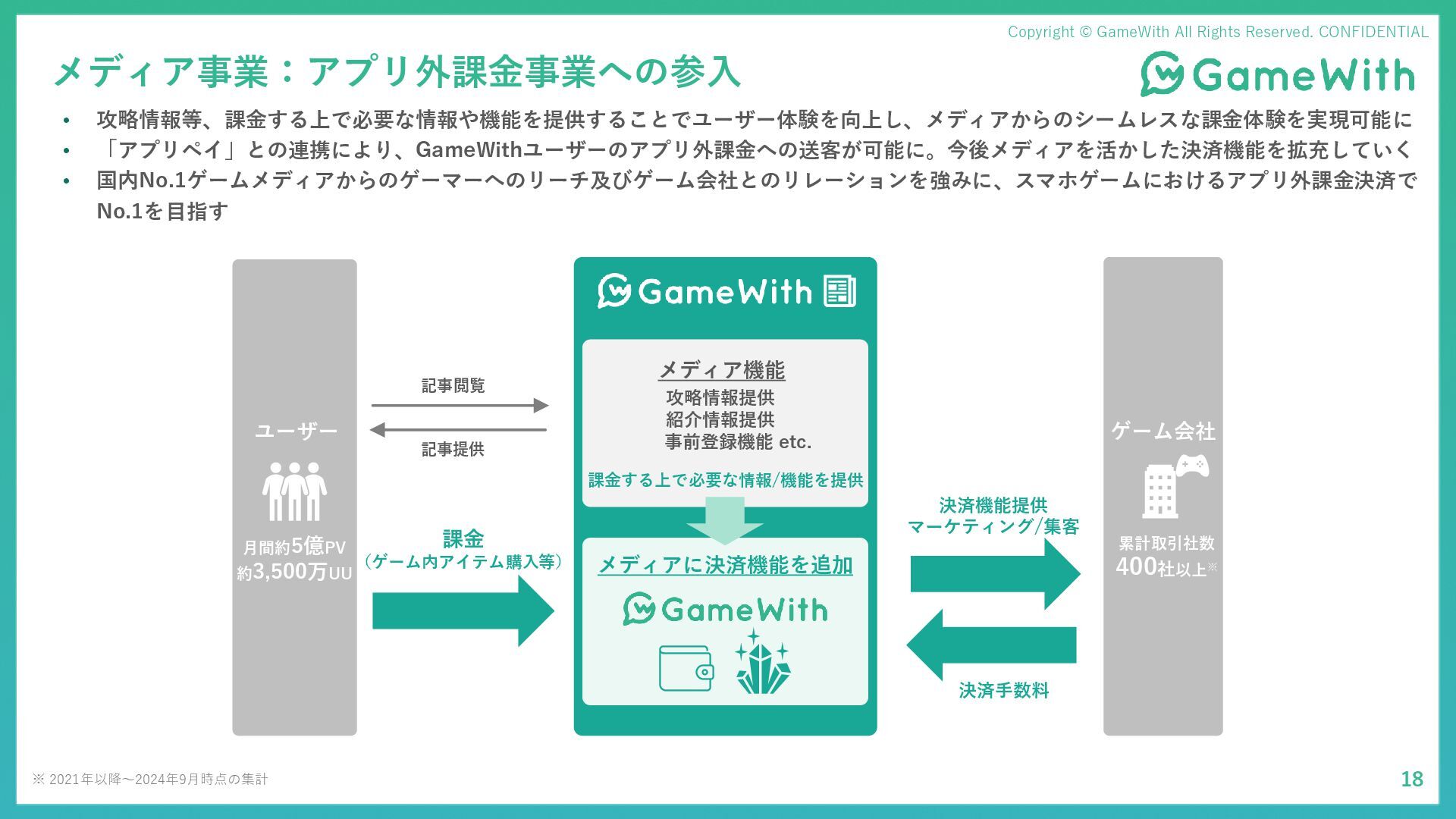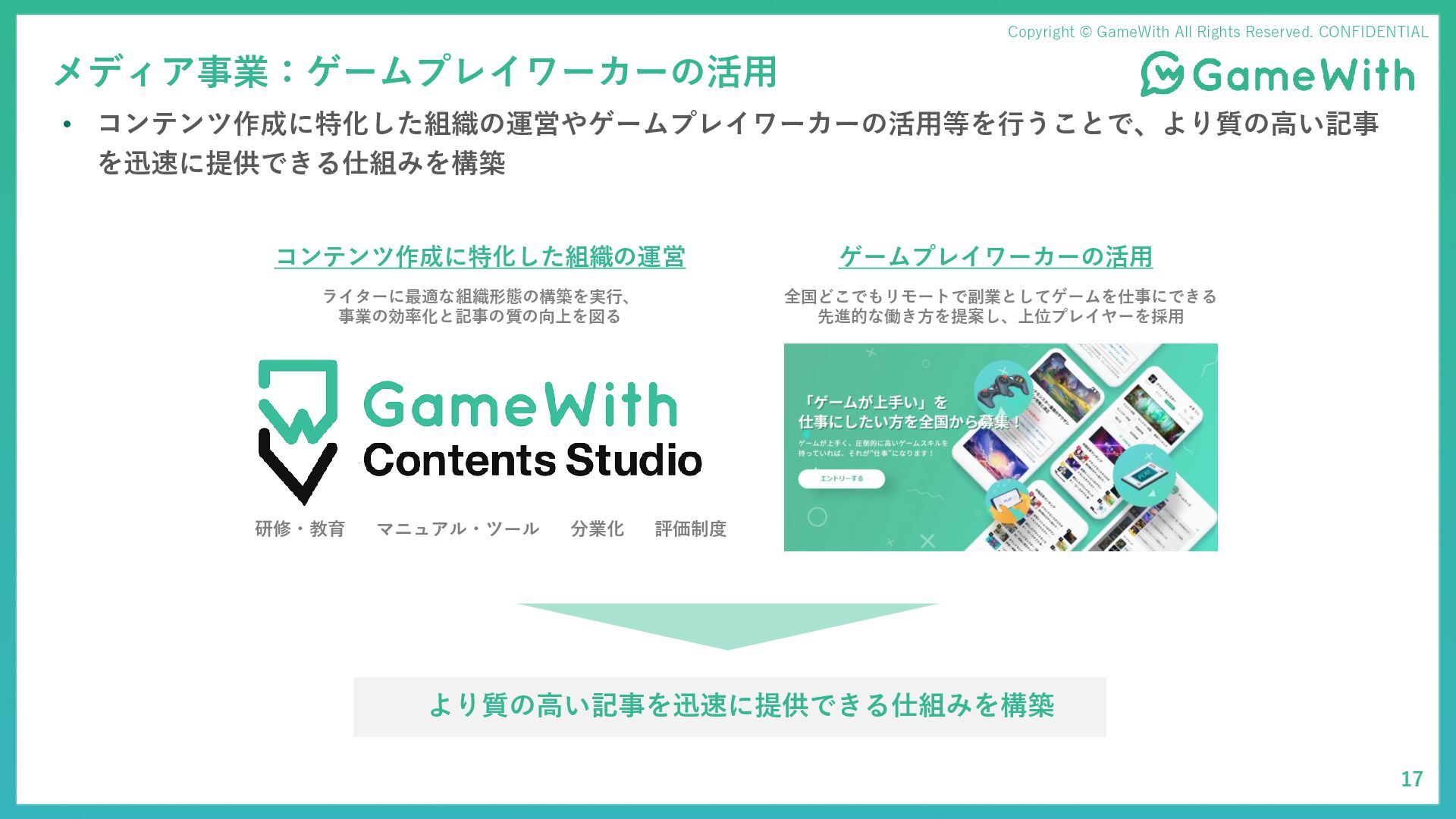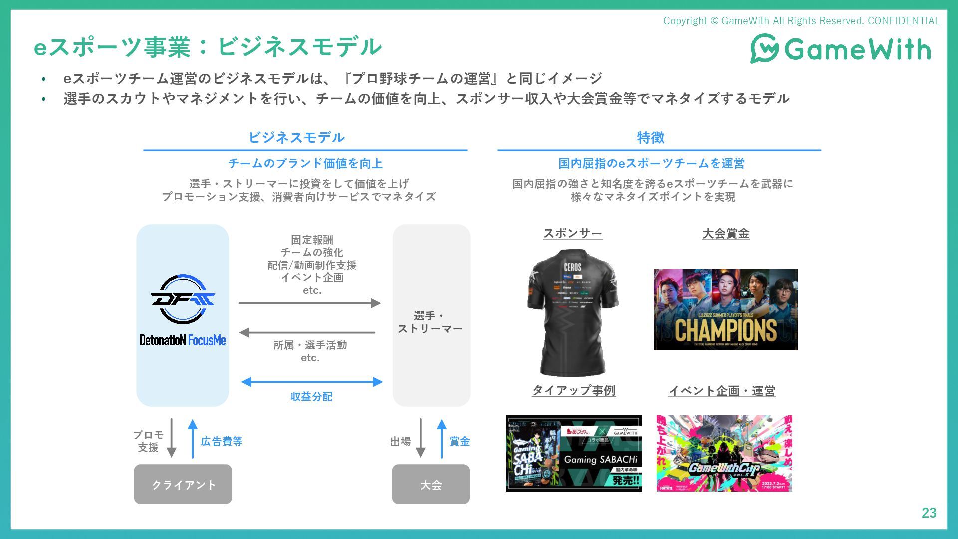 eスポーツ・エンタメ 記事提供 サービス提供 (ファンクラブ・グッズ販売等) YouTube 動画配信 広告収益 広告配信 動画視聴 料金 記事閲覧 新規事業 (NFT・回線等) サービス提供 (NFTゲーム・回線サービス等) 料金 広告主 クリエイター eスポーツ チーム マネジメント 料金 サービス提供 (タイアップ・イベント制作等) ゲーム 会社 スポンサー 大会主催者 収益分配 スポンサー /賞金 事業連携/ 収益分配等 提携会社 メディア クライアント 13 事業概要:GameWithのビジネスモデル • メディア事業は、ゲーム情報メディアからの広告収入でマネタイズを実現 • eスポーツ事業は、ゲーム会社等からのタイアップ収入だけでなく、ファンビジネスやスポンサー収入・大会賞金など幅広くマネタイズを 実施 • 新規事業は、関係会社との連携もしながらユーザーから直接マネタイズするモデル