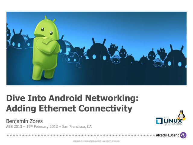 The talk introduces you to Android connectivity layer: how it really works and what needs to be added as to make the system fully support traditional wired Ethernet technology.