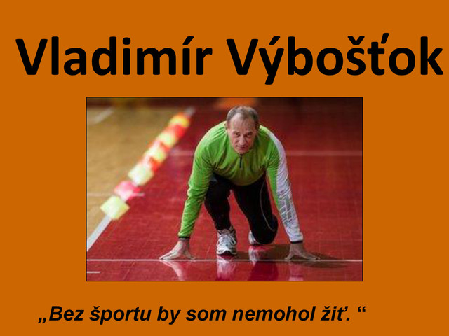 čas 7,52 sekundy – ako 60-ročný zabehol svetový rekord za 7,66 sekundy – minulý rok v kategórii 65- až 69-ročných dosiahol svetový rekord za 7,81 sekundy • 100 metrov – v roku 1993 (46 rokov) zabehol čas 11,87 sekundy – vlani sa mu podarilo pokoriť svetový rekord a to na úrovni 12,37 sekundy • diaľka – v roku 1993 skočil 590 centimetrov – minulý rok skočil 506 centimetrov, čím dosiahol slovenský rekord