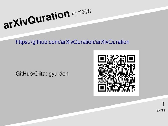 8/4/18 1 arXivQuration のご紹介紹介 https://github.com/arXivQuration/arXivQuration GitHub/Qiita: gyu-don