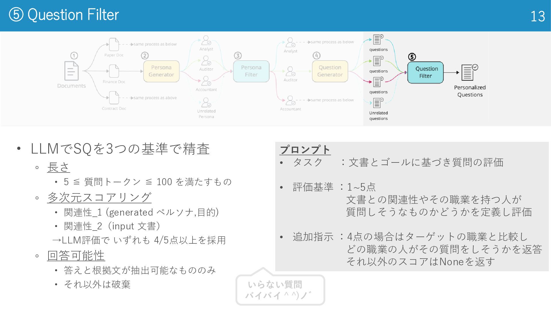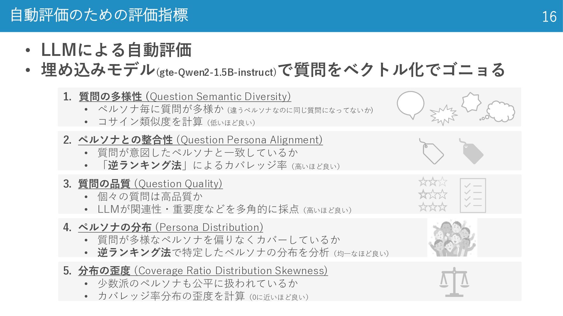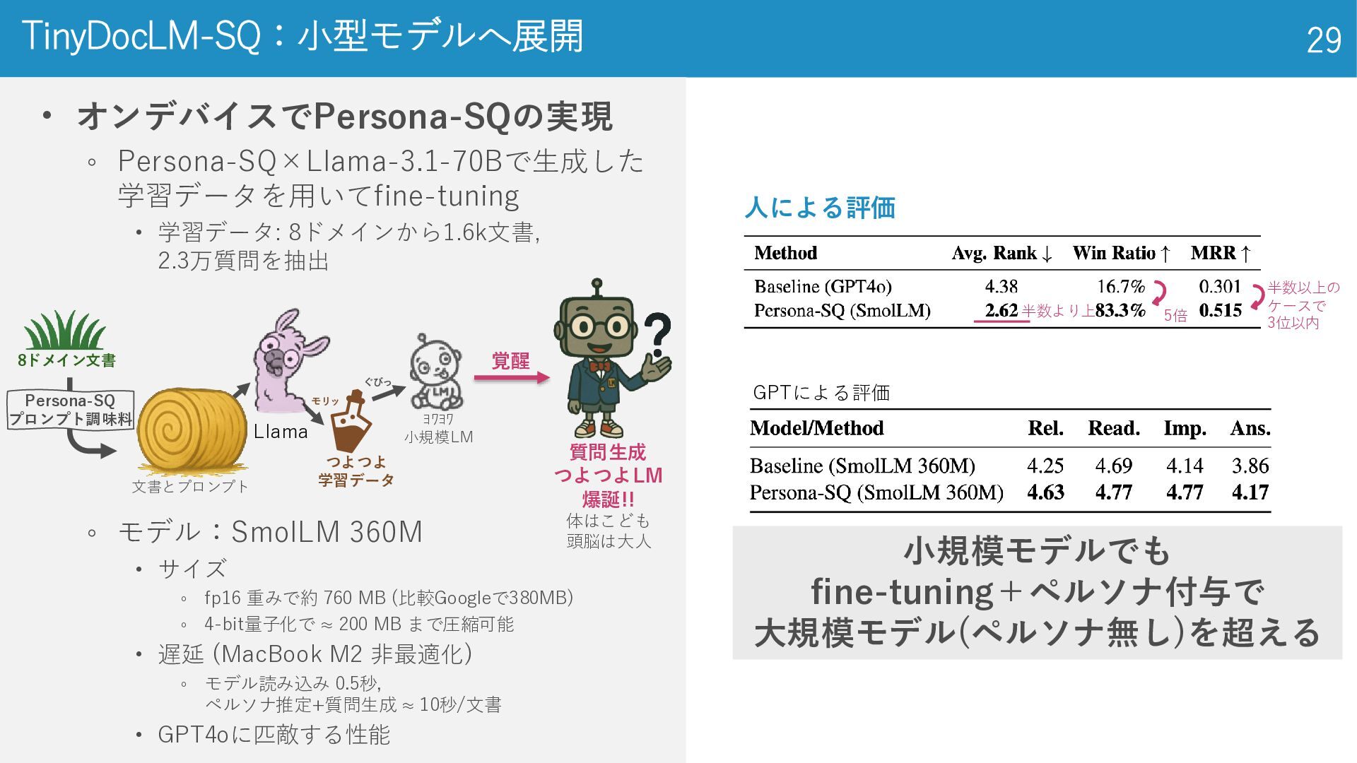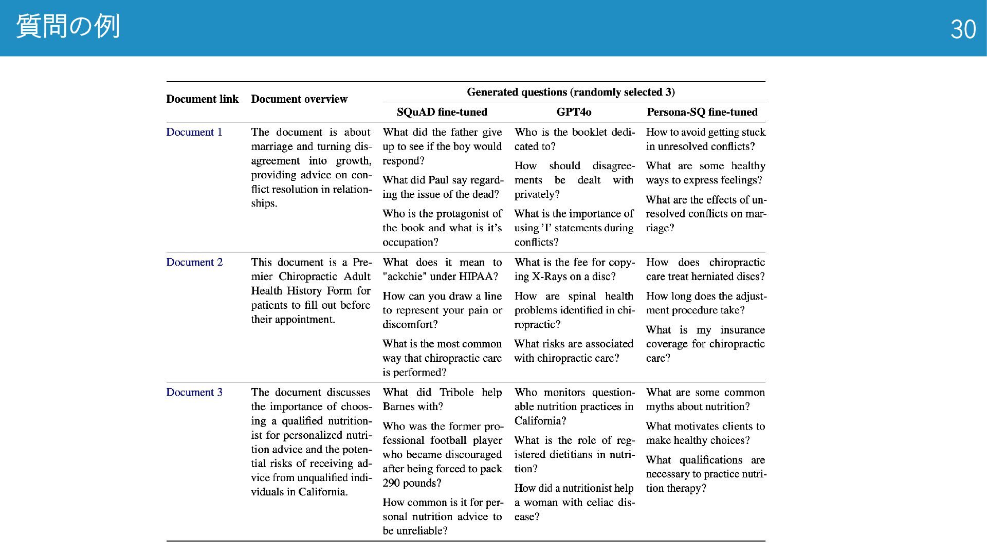 2020) • LSE上場企業の年次報告書 3,863件 (学習 3,000件, 検証 363件, テスト 500件) • 年次報告書全文 + 2–7 件のゴールド要約 ◦ 法律 (Legal): CUAD (Hendrycks et al., 2021) • アメリカの法律に関するデータセット • 契約書全文 510件 + 41 種類の条項スパン(開始・終了位置と抜粋)約1.3万箇所 ◦ 学術 (Academia): QASPER (Dasigi et al., 2021) • NLP系 研究論文 1,585本, 質問回答ペア 5,049件 • 論文全文(セクション‐段落構造付き)+ 複数のQAと根拠パラグラフ 金融、法律、学術の3ドメインで実験 データセット 14 El-Haj et al. (2020), FNS: Financial Narrative Summarisation, LREC-FNP 2020 Hendrycks et al. (2021), CUAD: Legal Contract Review Dataset, arXiv:2103.06268 Dasigi et al. (2021), QASPER: QA on Scientific Papers, EMNLP 2021 専門家による アノテーションされて るんだって。無給かな。