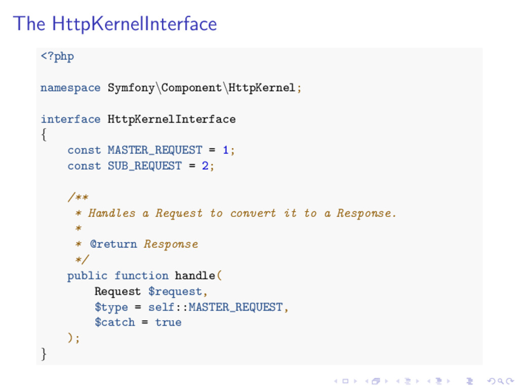 = 1; const SUB_REQUEST = 2; /** * Handles a Request to convert it to a Response. * * @return Response */ public function handle( Request $request, $type = self::MASTER_REQUEST, $catch = true ); }