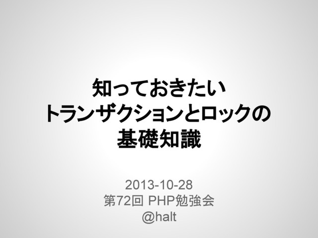 知っておきたい トランザクションとロックの 基礎知識 2013-10-28 第72回 PHP勉強会 @halt