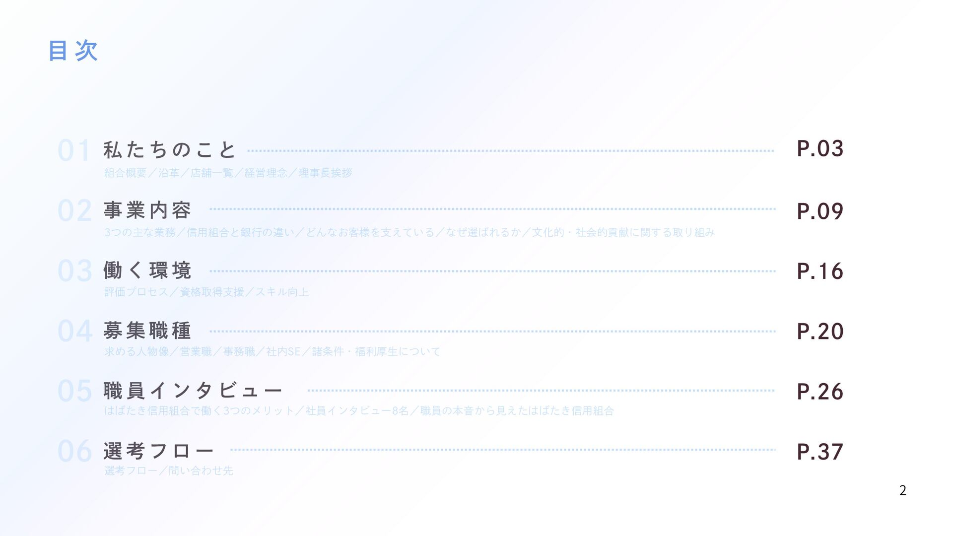 1. 目 次 02 事 業 内 容 03 働 く