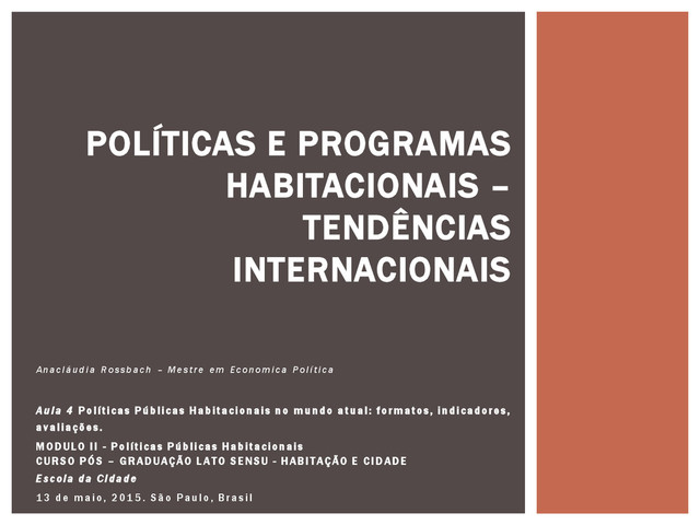 MODULO II - Políticas Públicas Habitacionais