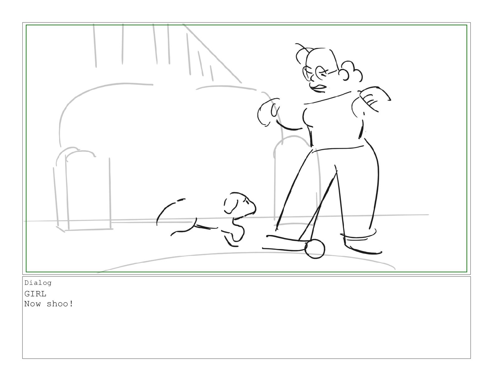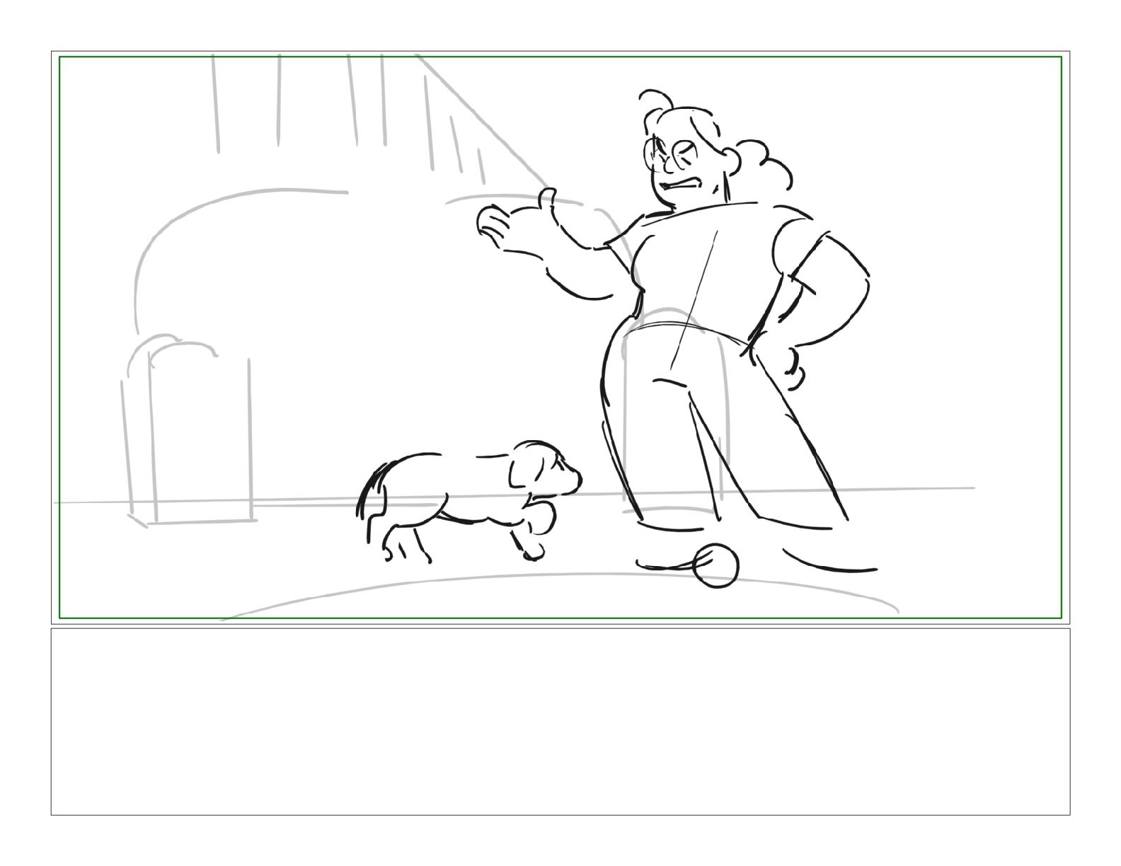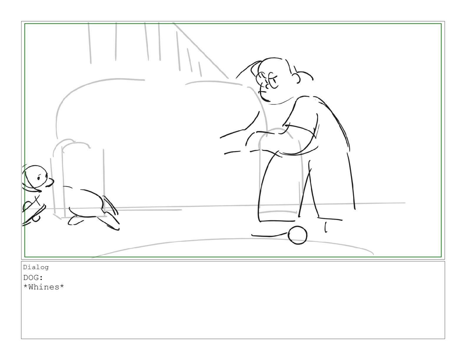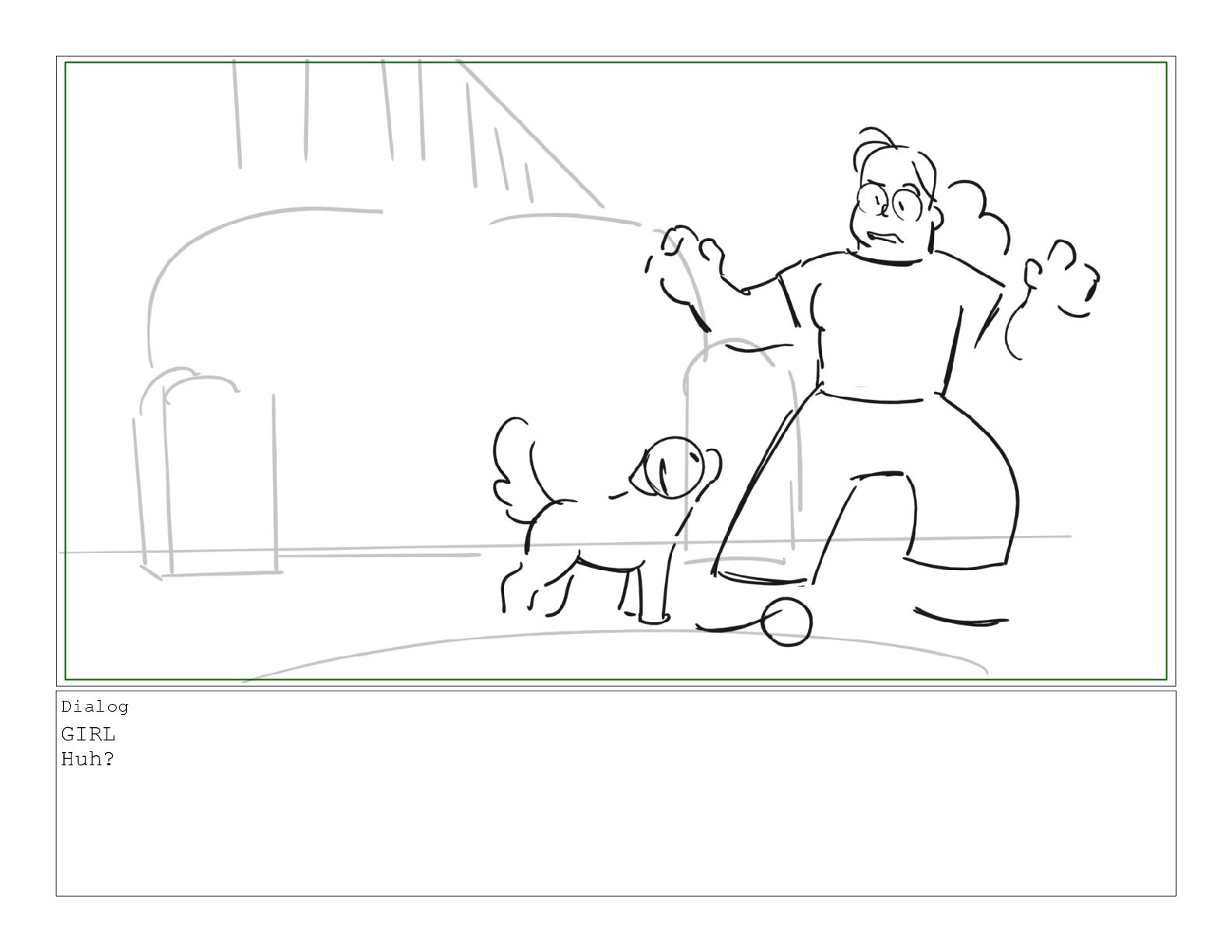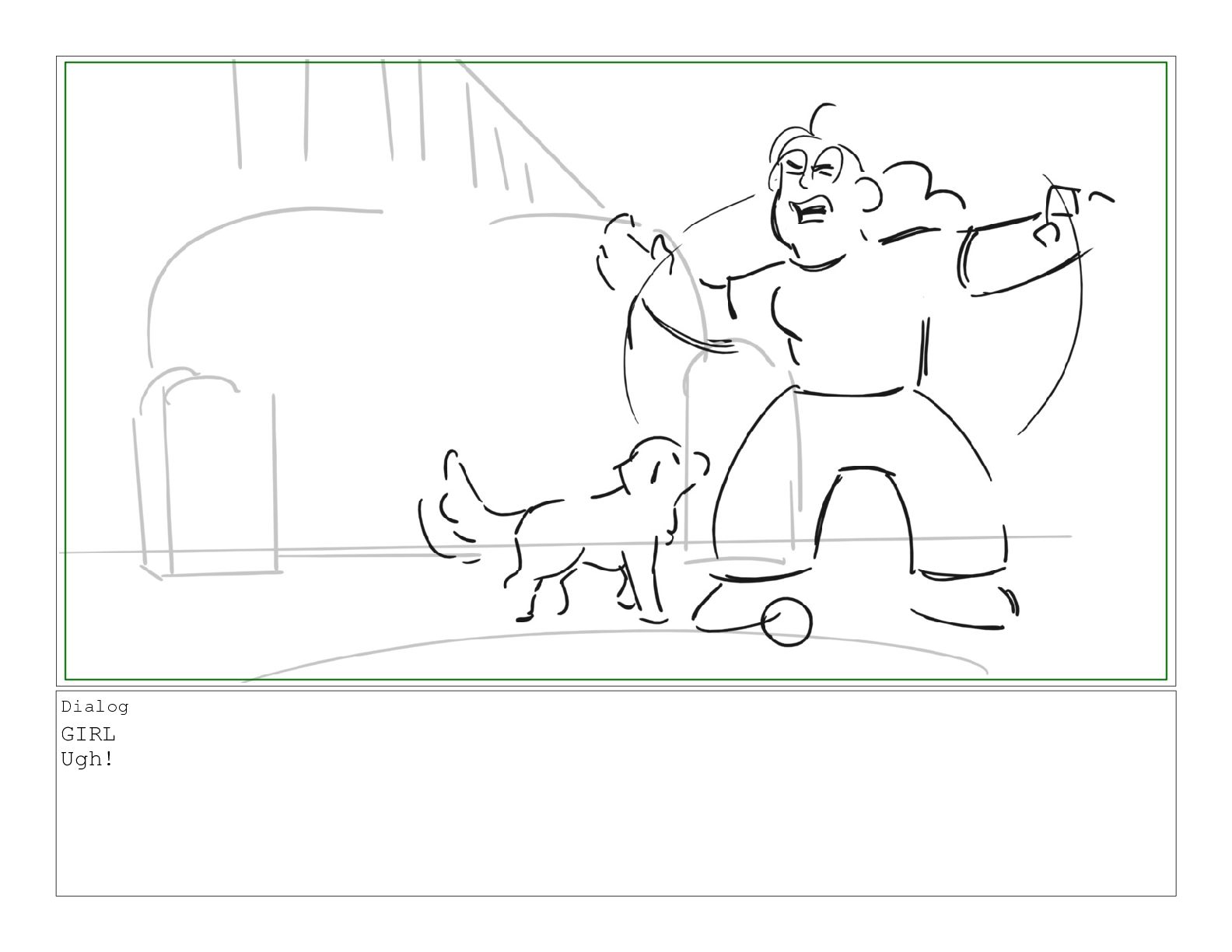 A girl following along with a jazzercise program is pestered by her dog into playing a game of catch