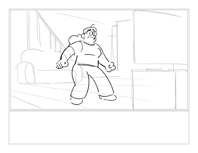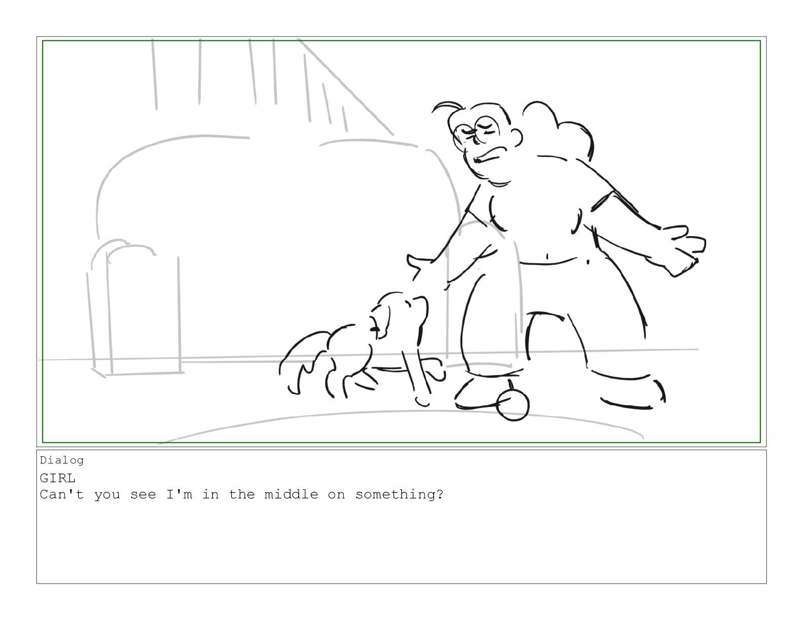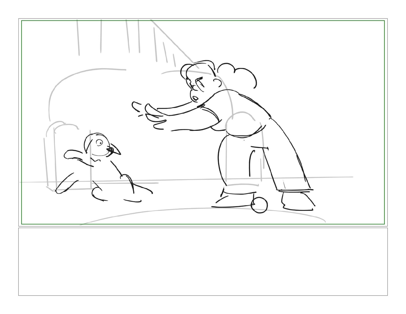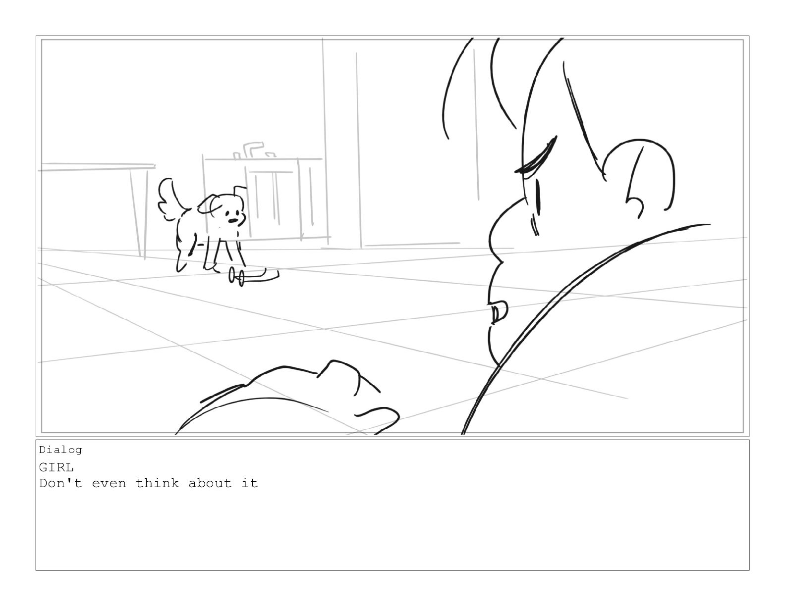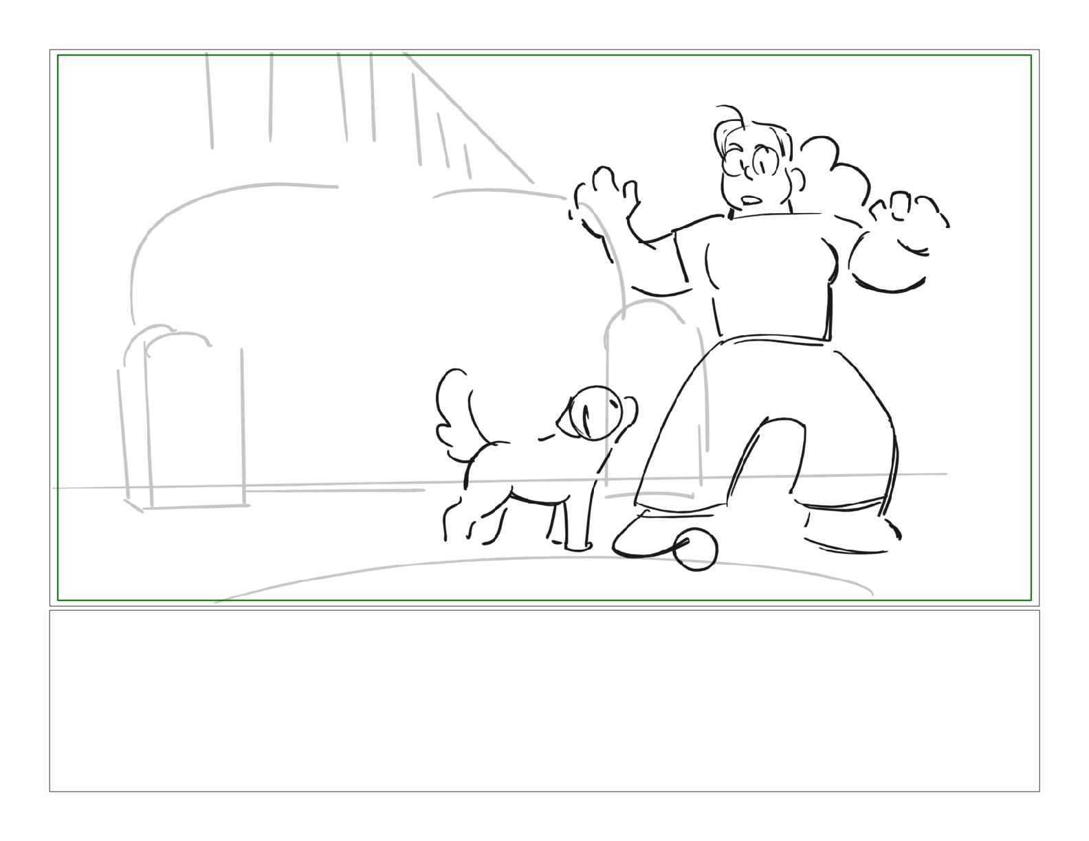 A girl following along with a jazzercise program is pestered by her dog into playing a game of catch
