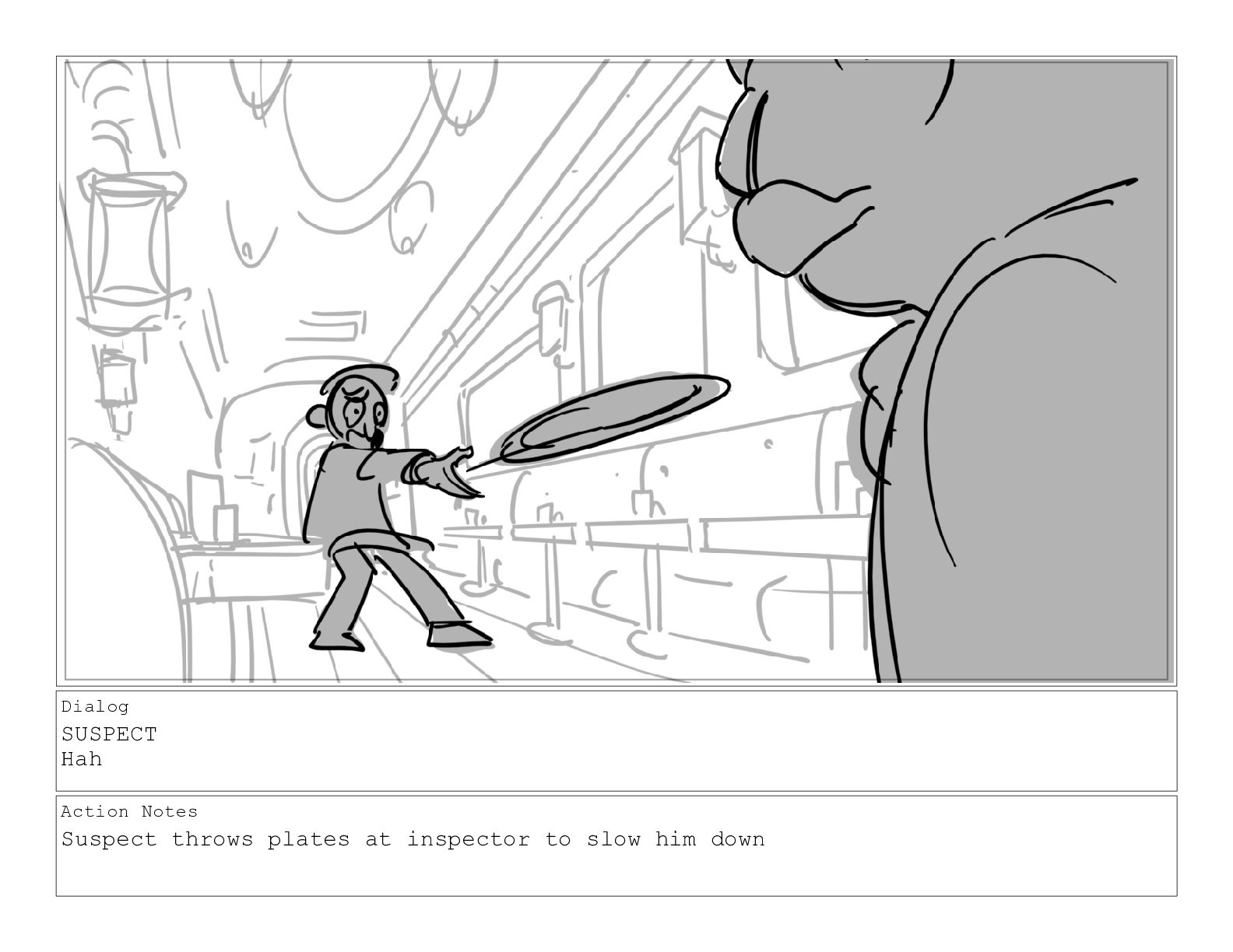 Dialog SUSPECT Hah Action Notes Suspect throws plates at inspector