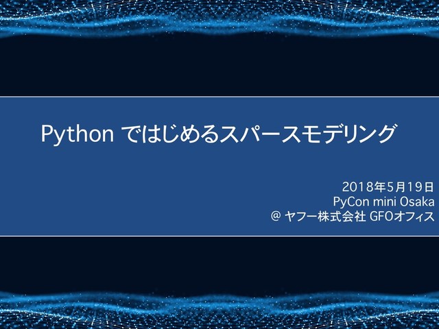 Python ではじめるスパースモデリング 2018年5月19日 PyCon mini Osaka @ ヤフー株式会社 GFOオフィス