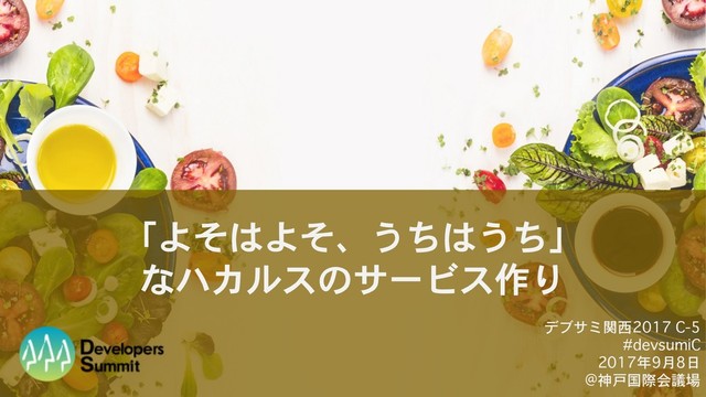 「よそはよそ、うちはうち」 なハカルスのサービス作り デブサミ関西2017 C-5 #devsumiC 2017年9月8日 @神戸国際会議場