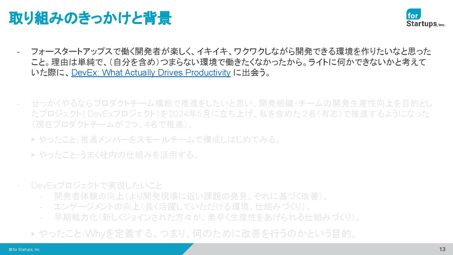 【フォースタートアップス×キャディ×プレイド×Findyが登壇!】DevEx専門チームに学ぶ!定性・定量からみた開発効率を最適化させる開発者体験【オフライン限定開催】 https://news.3rd-in.co.jp/article/41d5c2b8-f3e2-11ef-a035-9ca3ba083d71#google_vignette&gsc.tab=0