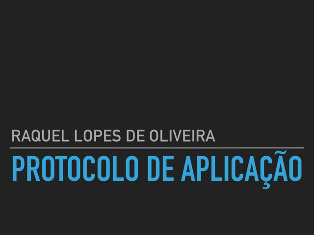 RAQUEL LOPES DE OLIVEIRA TCP Abre conexão APLICAÇÃO OPERAÇÃO Fecha
