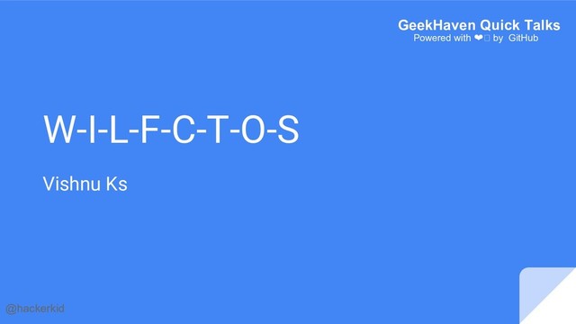 @hackerkid Vishnu Ks W-I-L-F-C-T-O-S GeekHaven Quick Talks Powered with ❤