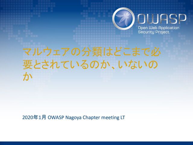 マルウェアの分類はどこまで必 要とされているのか、いないの か 2020年1月 OWASP Nagoya Chapter meeting LT