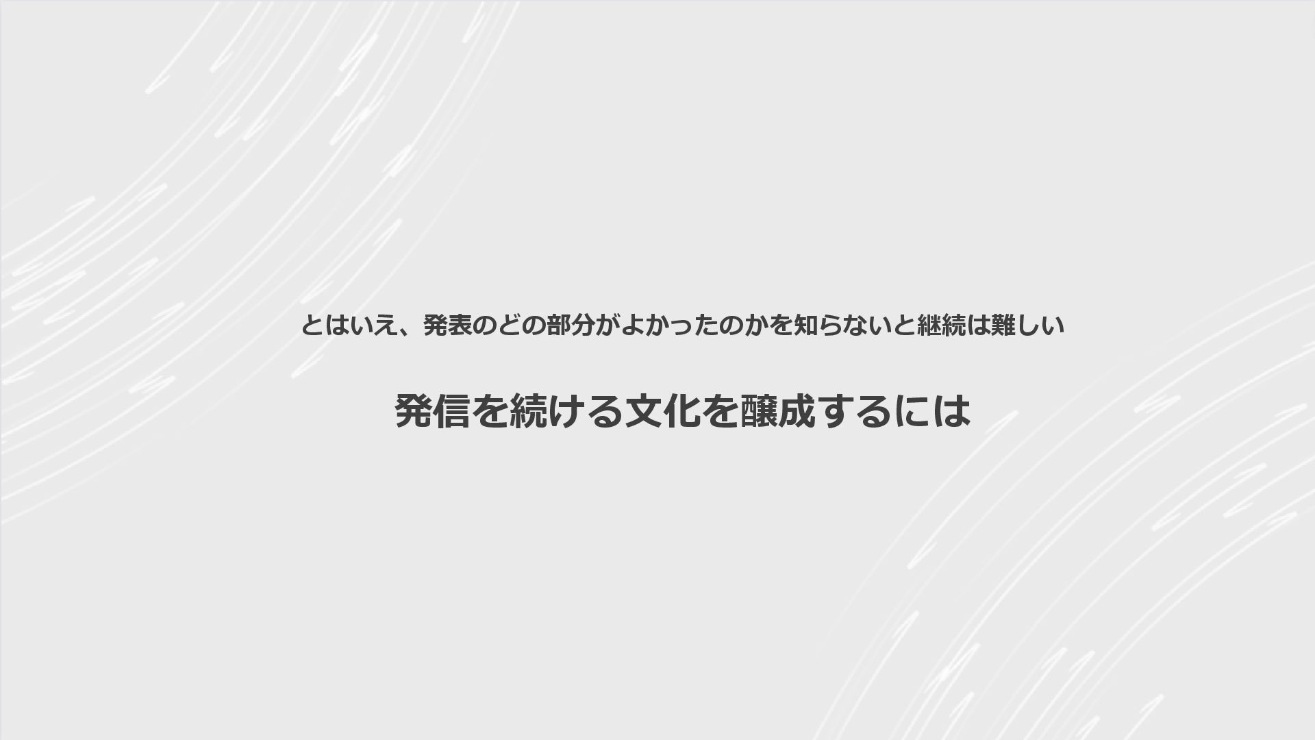 とはいえ、発表のどの部分がよかったのかを知らないと継続は難しい 発信を続ける文化を醸成するには