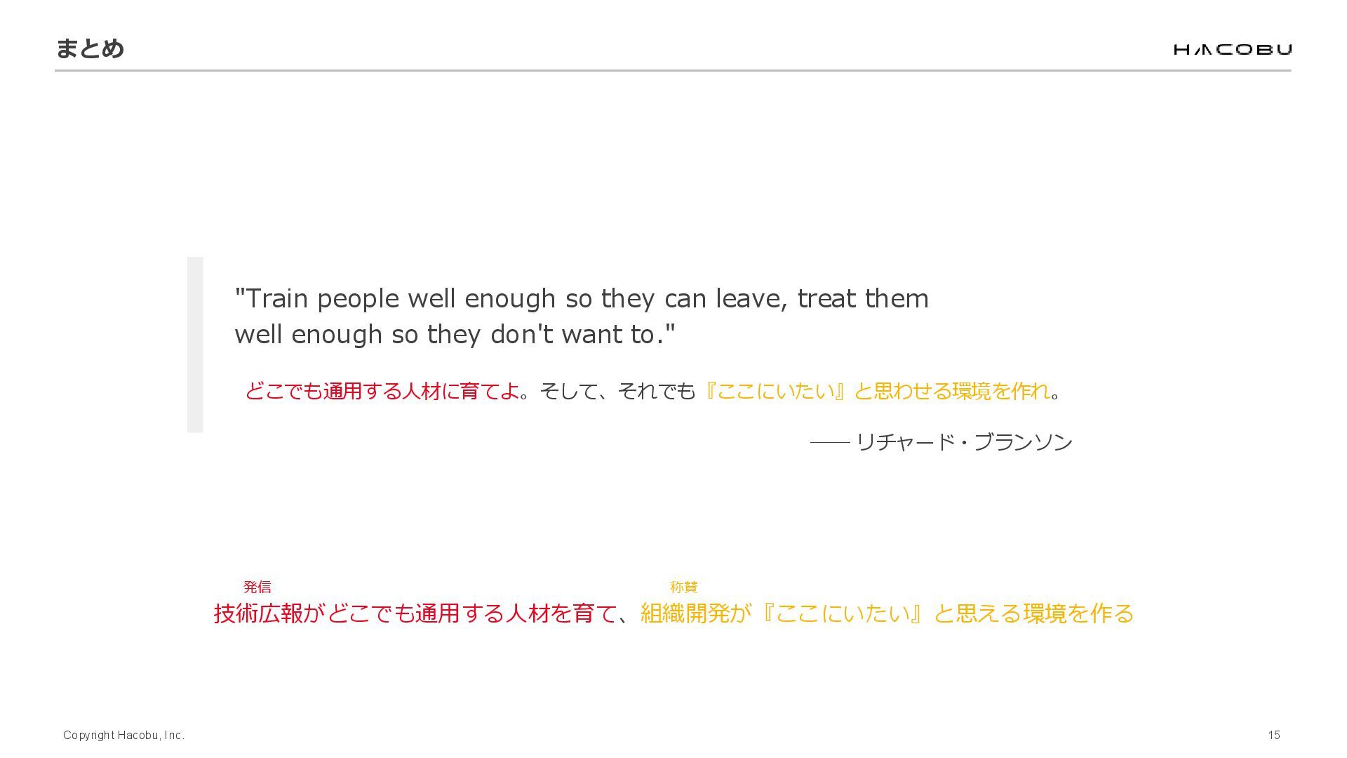 Copyright Hacobu, Inc. 15 まとめ "Train people well enough so