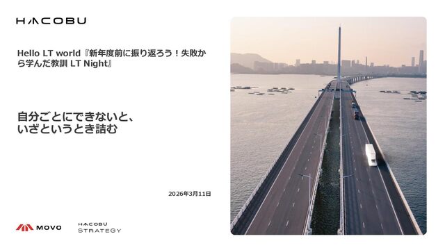 Hello LT world『新年度前に振り返ろう!失敗から学んだ教訓 LT Night』 2026年3月12日(水)18:30 〜 21:00 https://findy.connpass.com/event/382194/