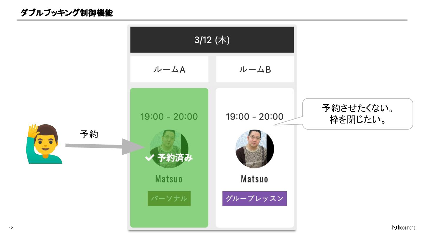 12 ダブルブッキング制御機能 予約させたくない。 枠を閉じたい。 予約