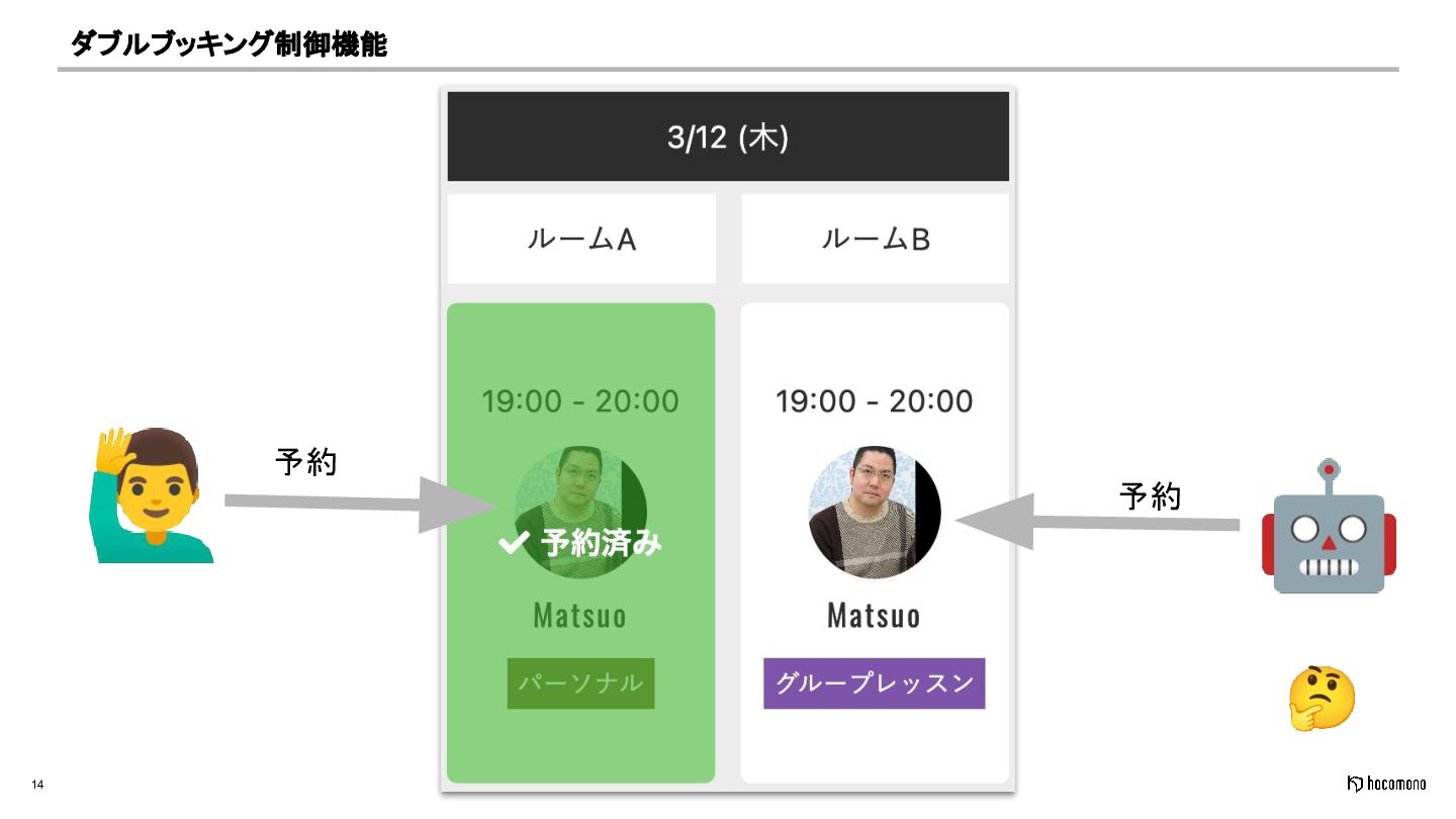 14 ダブルブッキング制御機能 🤖 予約 予約 🤔