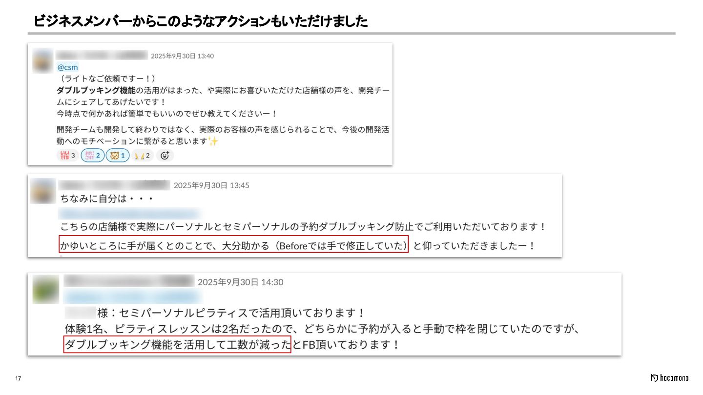17 ビジネスメンバーからこのようなアクションもいただけました