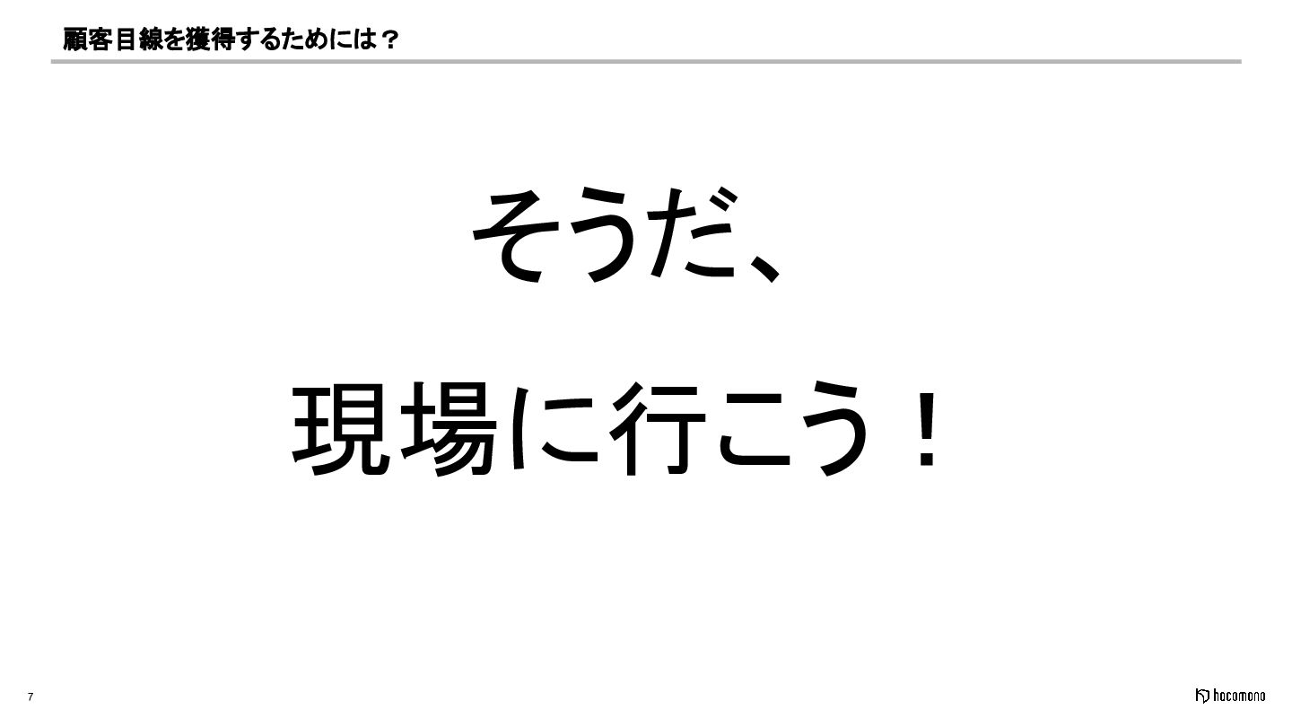7 顧客目線を獲得するためには? そうだ、 現場に行こう!