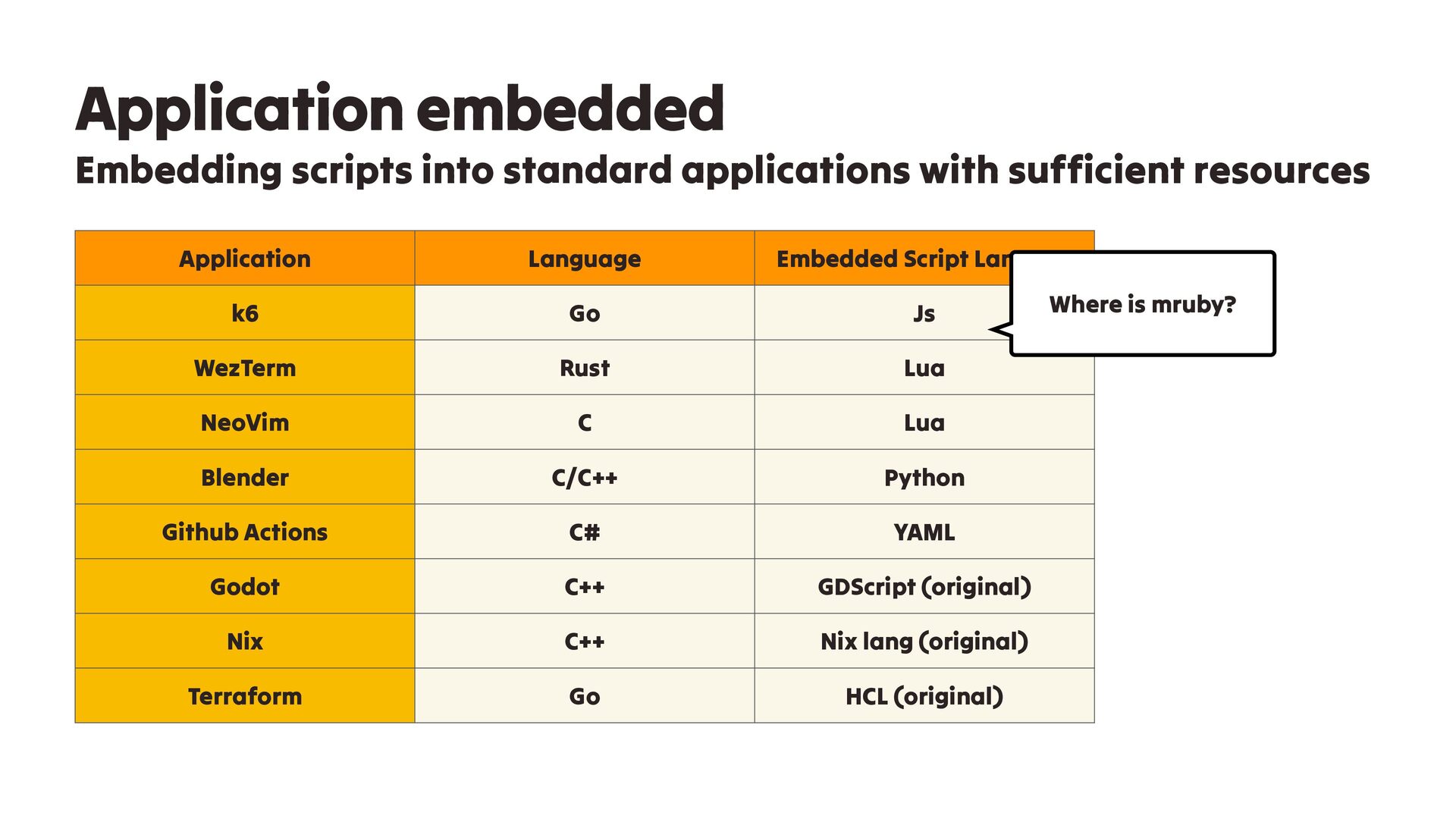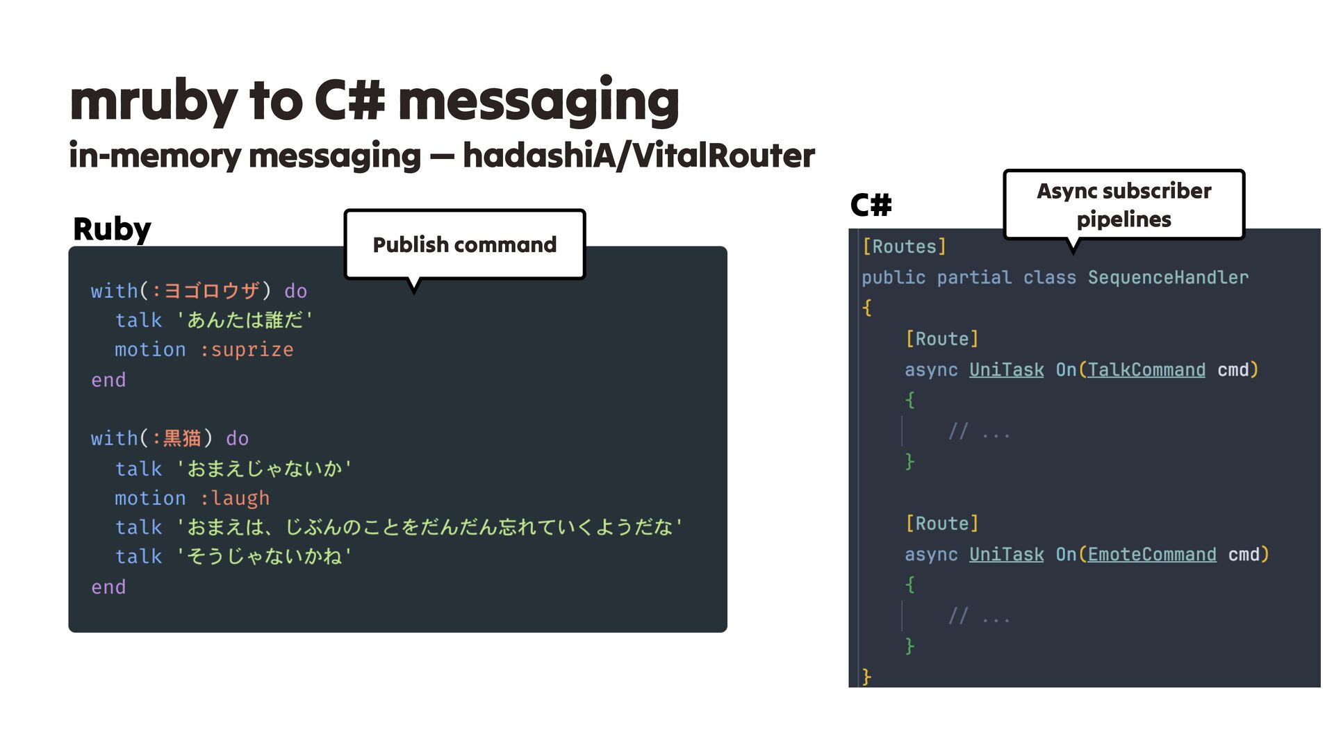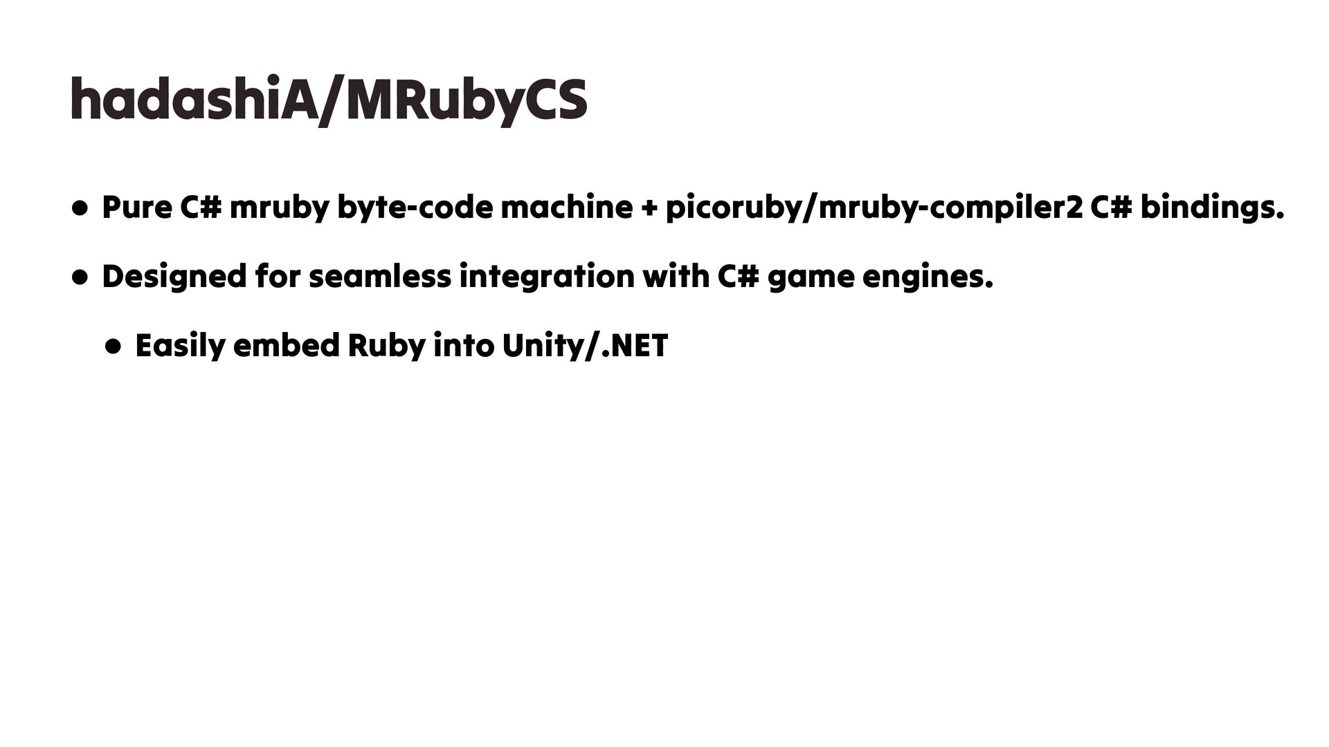 What if mruby could run anywhere—without any C compilation? I built MRubyCS, a complete mruby VM implementation in pure C#. This makes embedding mruby in cross-platform applications far easier. Cross-platform distribution means juggling build targets, static/dynamic linking, and diverse host machines—a constant hassle (iOS, Web, Win, Mac, consoles, etc.). And on closed platforms like game consoles (Ps, Switch, Xbox..), it's often impractical without SDK access—now it just works. Unity and .NET already handle platform abstraction for you. This also opens new doors for the Ruby community. Game development has long been a space where Ruby has limited presence. With mruby running in Unity, Ruby developers can bring their language into one of the world's most popular game engines—for scripting game logic, building tools, and more. Beyond the VM implementation story, I'll show practical game scripting with VitalRouter.MRuby and Fiber-based coroutines!