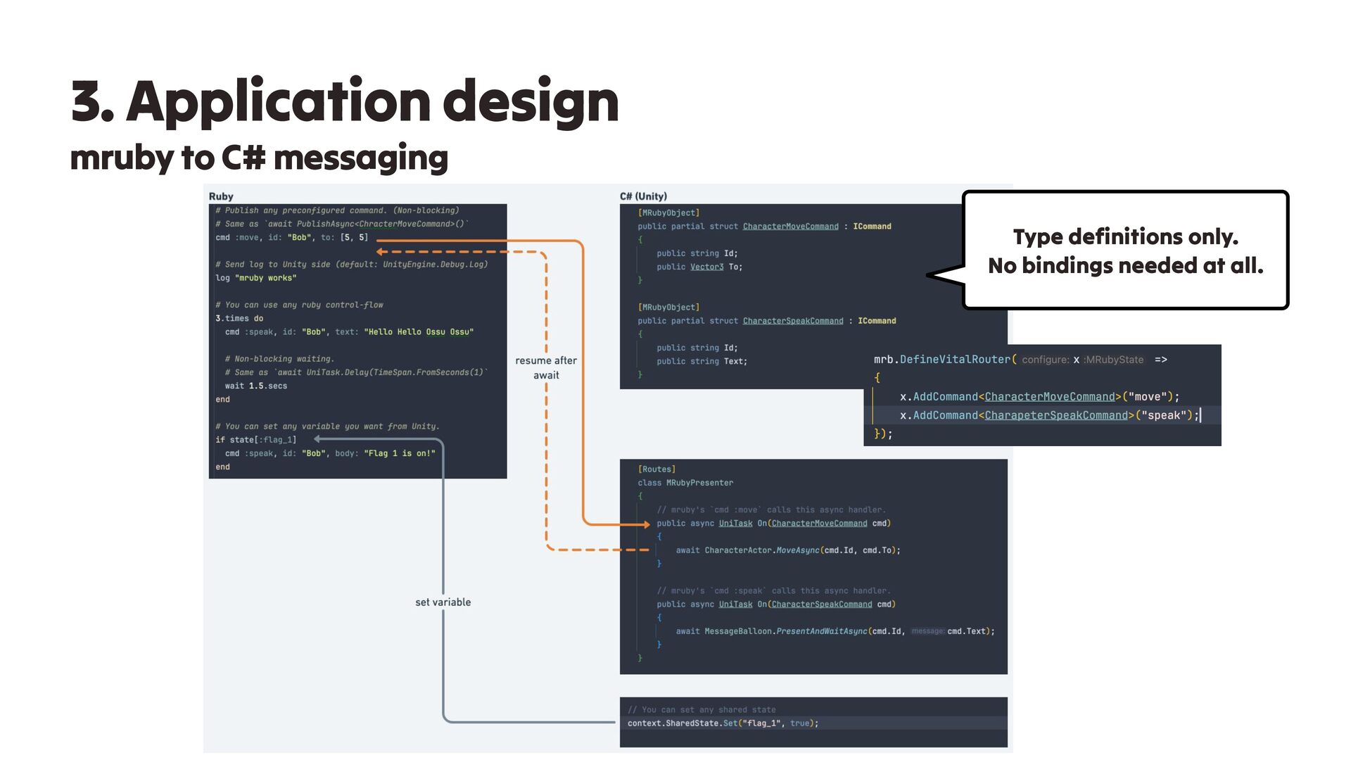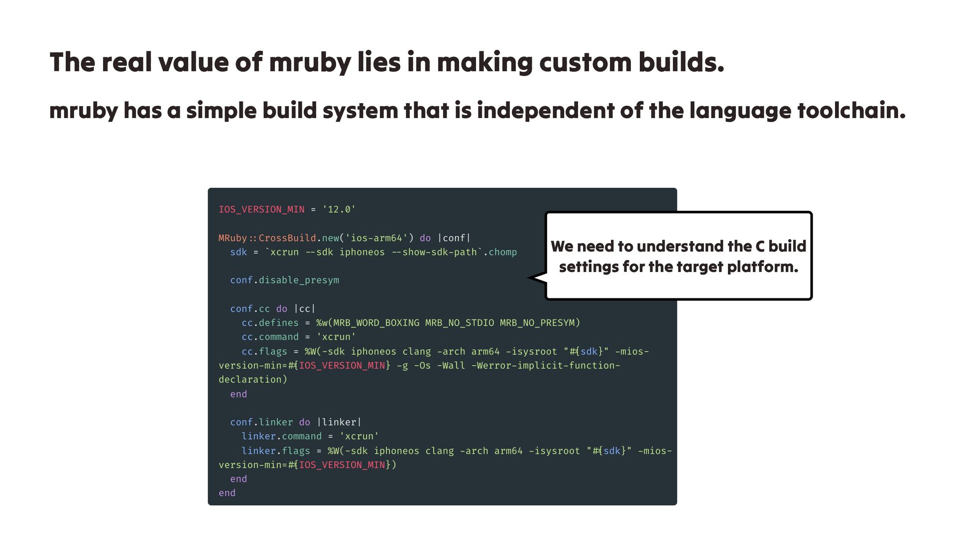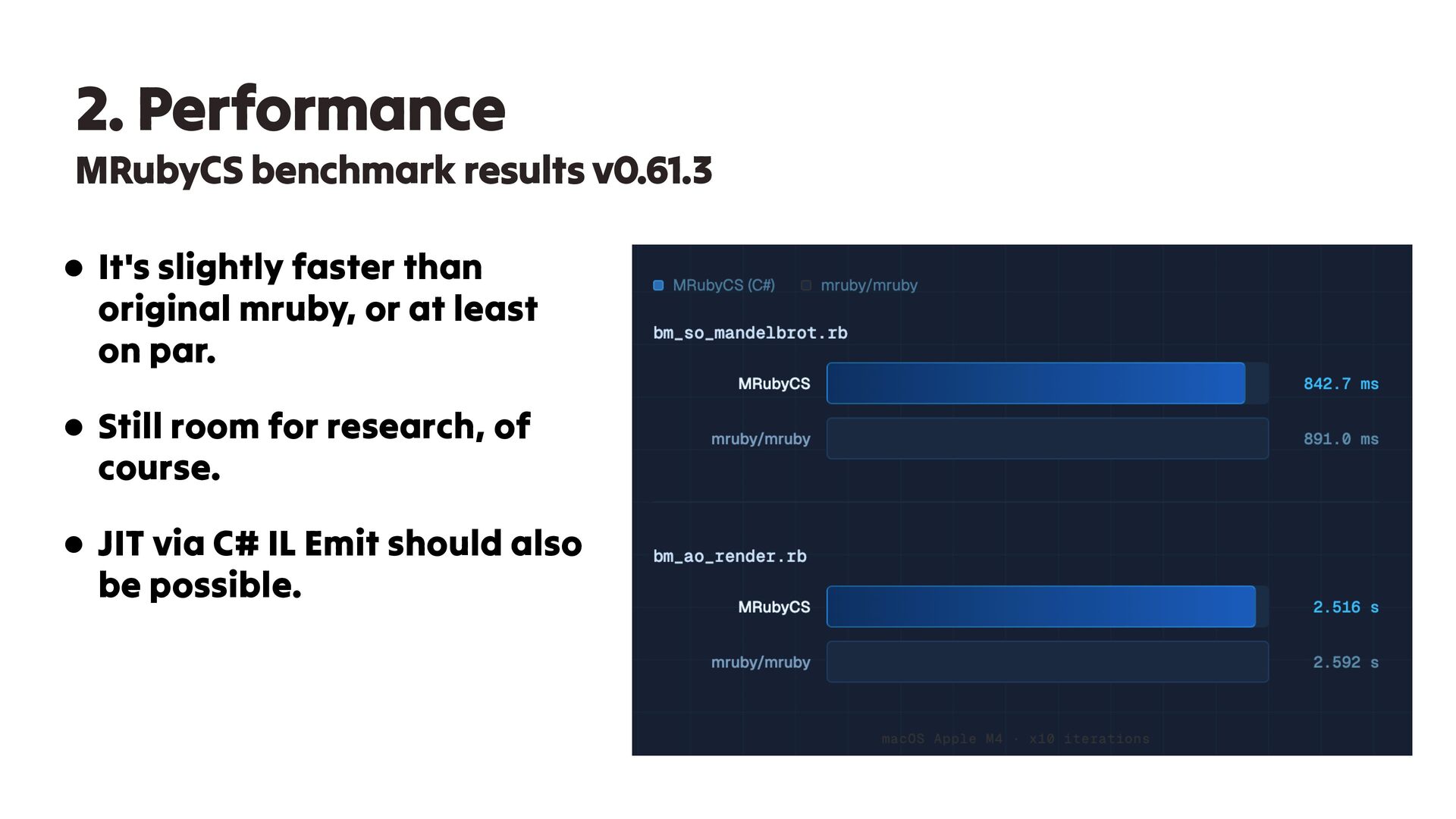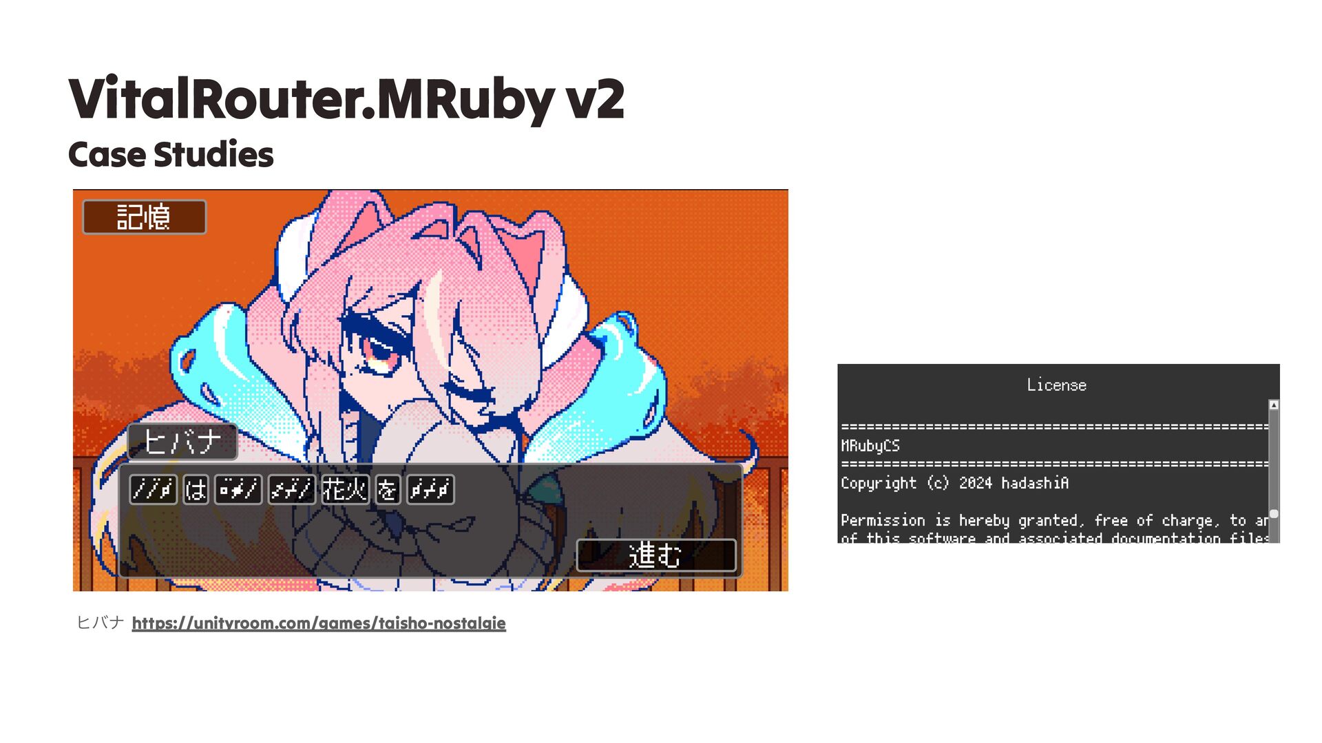 What if mruby could run anywhere—without any C compilation? I built MRubyCS, a complete mruby VM implementation in pure C#. This makes embedding mruby in cross-platform applications far easier. Cross-platform distribution means juggling build targets, static/dynamic linking, and diverse host machines—a constant hassle (iOS, Web, Win, Mac, consoles, etc.). And on closed platforms like game consoles (Ps, Switch, Xbox..), it's often impractical without SDK access—now it just works. Unity and .NET already handle platform abstraction for you. This also opens new doors for the Ruby community. Game development has long been a space where Ruby has limited presence. With mruby running in Unity, Ruby developers can bring their language into one of the world's most popular game engines—for scripting game logic, building tools, and more. Beyond the VM implementation story, I'll show practical game scripting with VitalRouter.MRuby and Fiber-based coroutines!