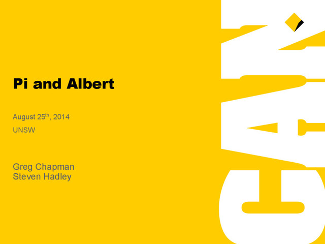 overview – Development journey – Introducing Pi & Albert ♦ Steve – Albert in detail – Security and payments – The new app ecosystem – Potential unsolved problem spaces ♦ Greg – Closing & questions