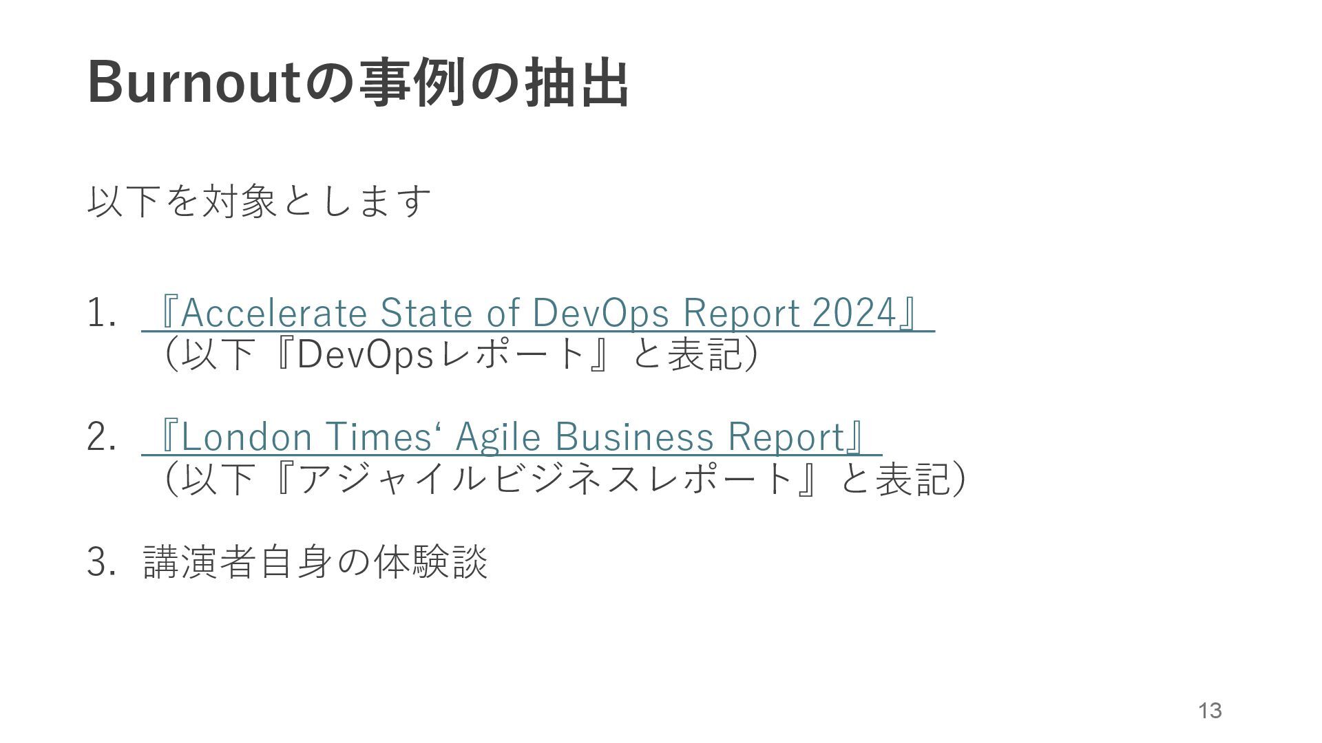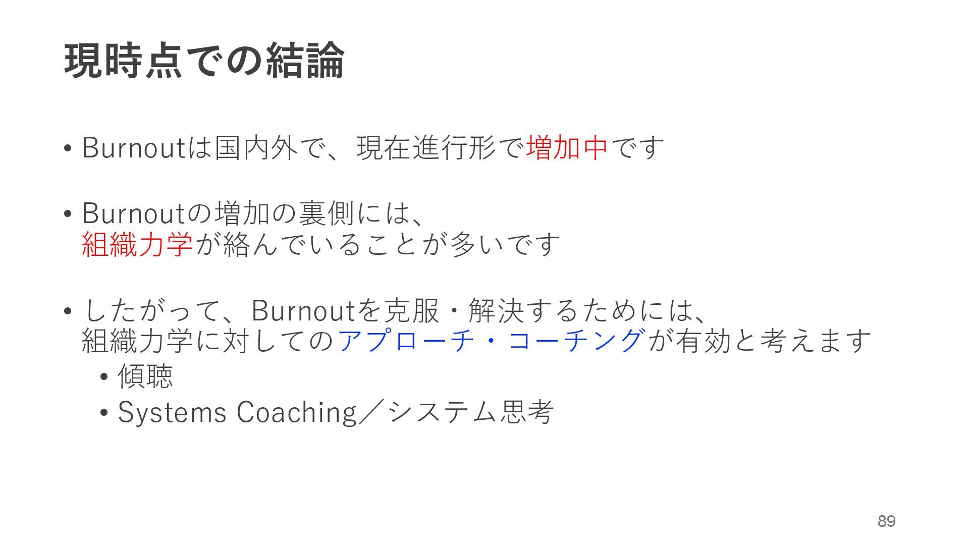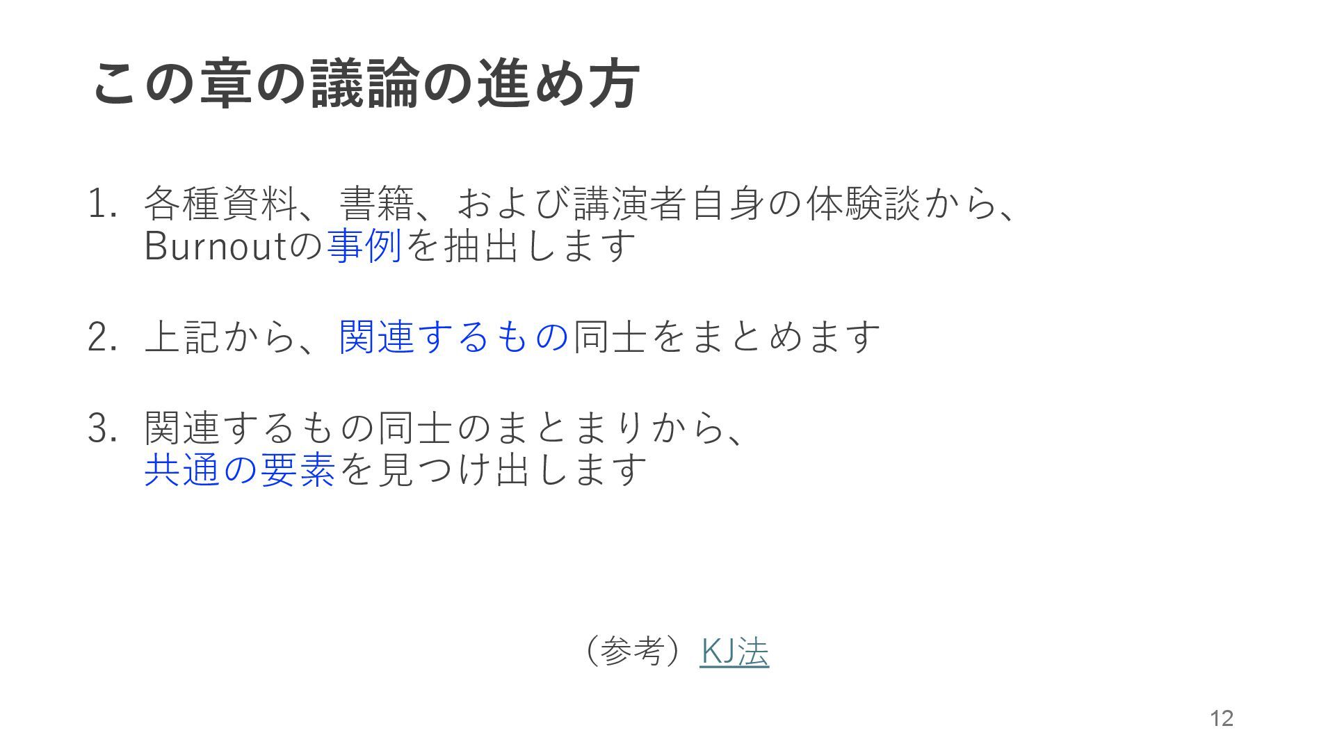 当資料では、アジャイルコーチングの知識・スキルを活用して、Burnoutから身を守る方法を、実例込みで紹介しています。