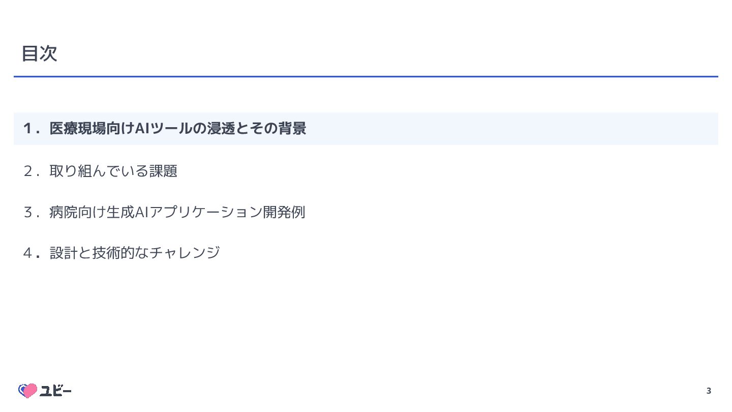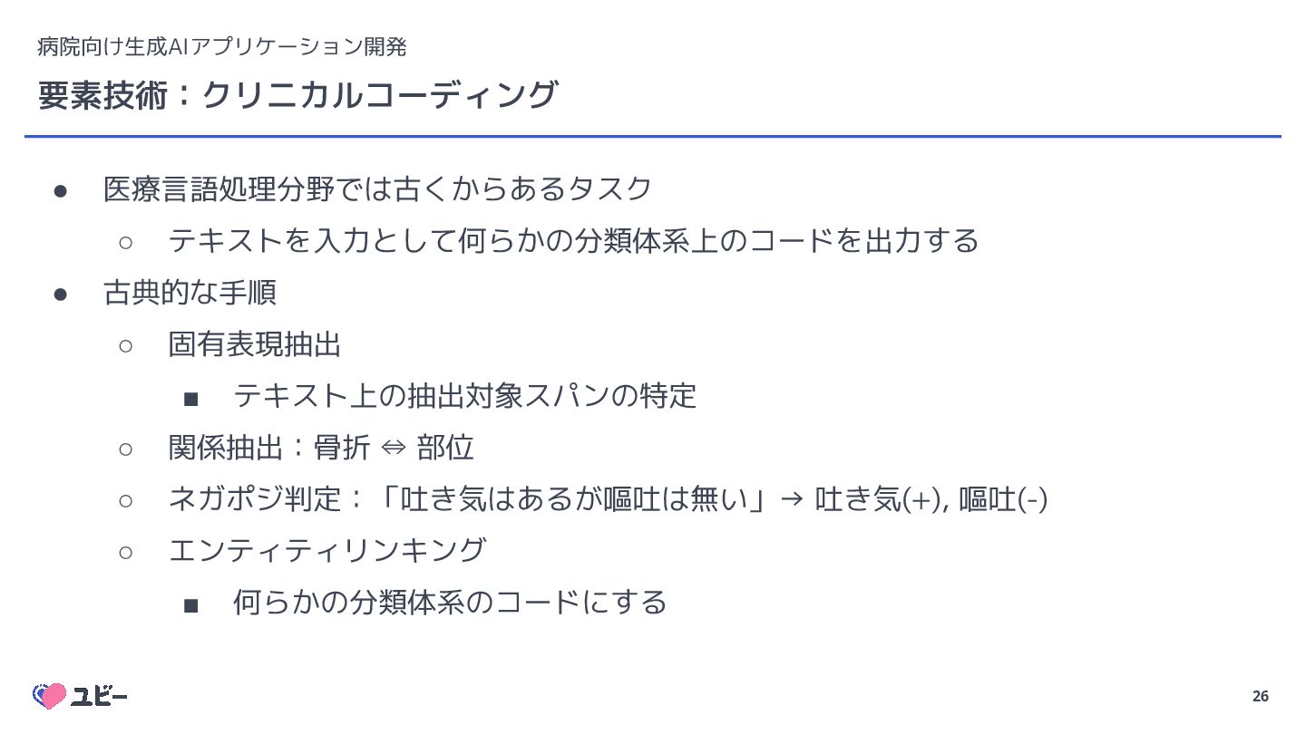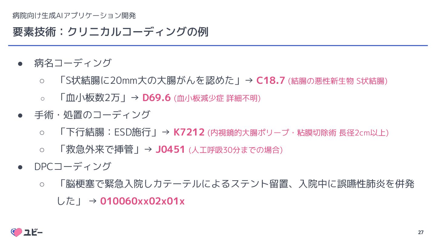 医療AIと医療NLP、クリニカルコーディング、生成AIアプリケーションについてです。