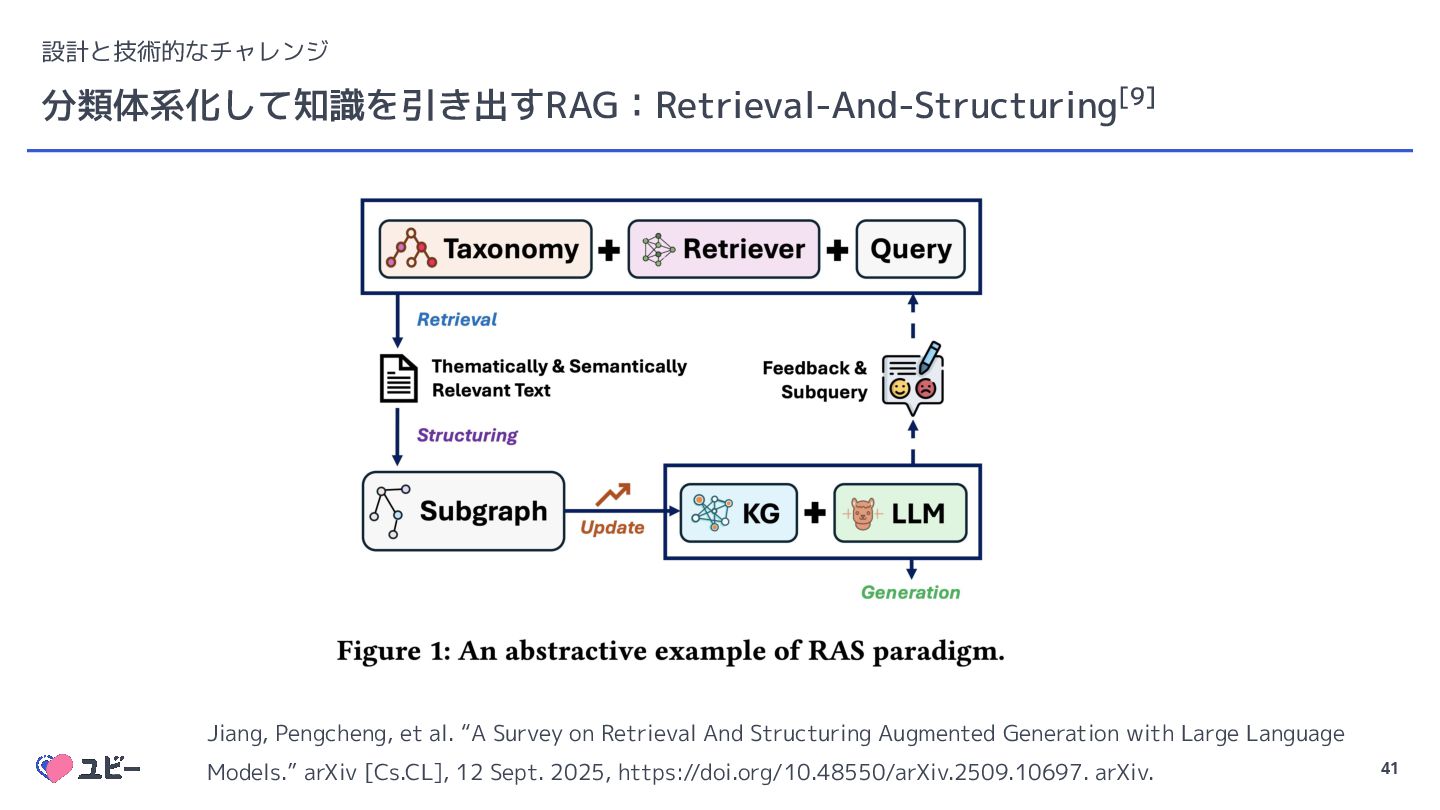 23. 41 分類体系化して知識を引き出すRAG:Retrieval-And-Structuring[9] Jiang, Pengcheng, et al. “A Survey on Retrieval