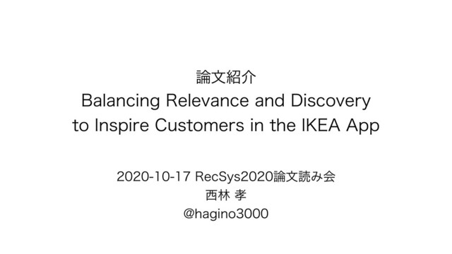 論文紹介 Balancing Relevance and Discovery to Inspire Customers in the IKEA App