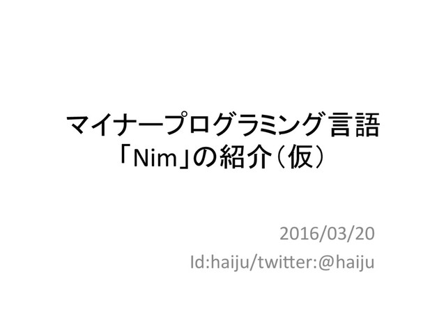 version 0.11.2以上が必要 nawak: (h4ps://github.com/idlewan/nawak) A web micro-framework in Nimrod, heavily inspired by jester, flask and the like. awesome-nim: (h4ps://github.com/VPashkov/awesome-nim) に載っているものをチェックしておけばだいたい・・・ バージョンが上がるごとにメンテされなくなって、動かなくなるア プリやライブラリが増える