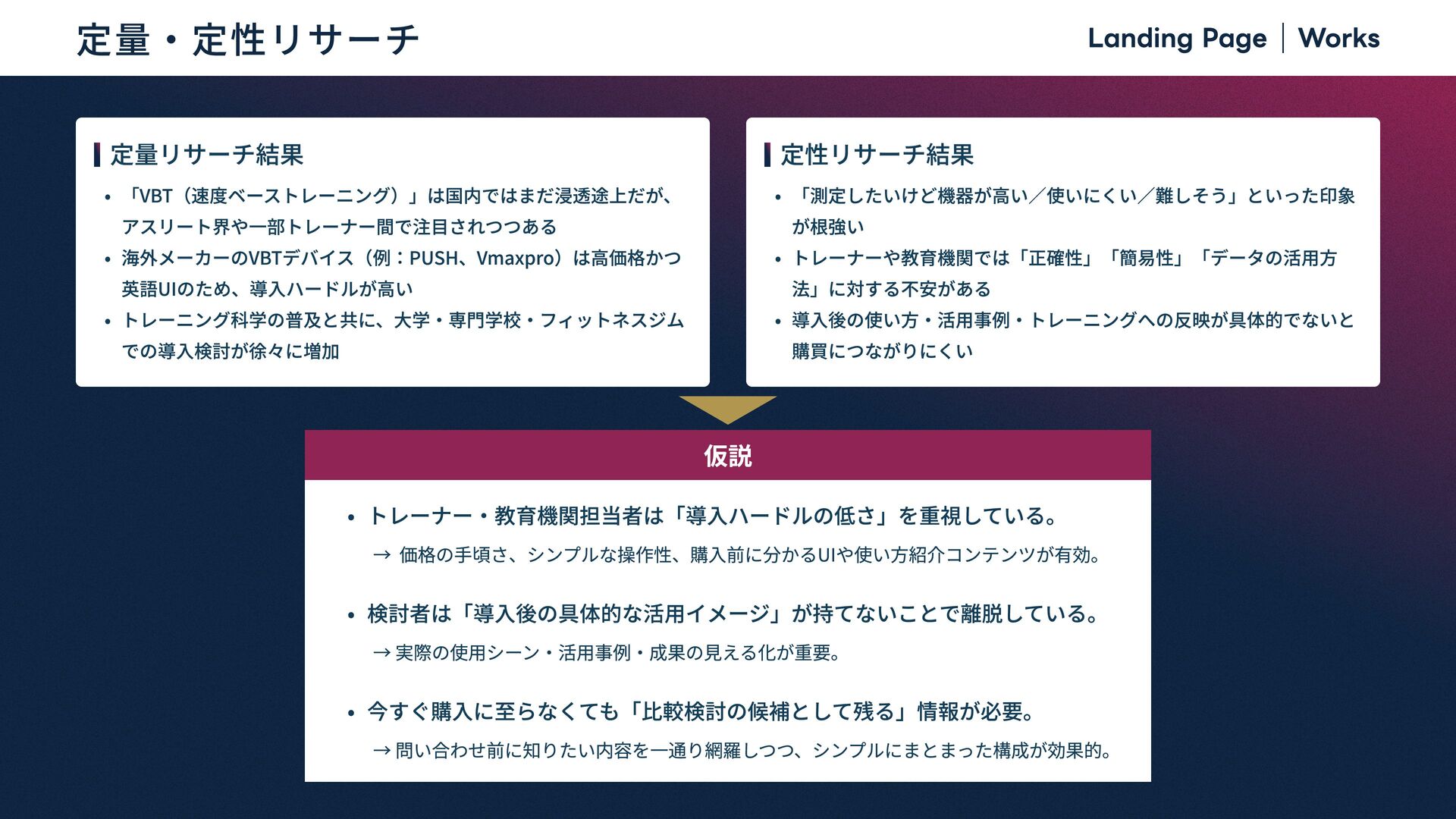 パーソナルトレーニングの 質を向上 研究機関での 精密なデータ収集 リハビリテーションでの 安全な筋力回復 お客様がより短期間で目標を達成で き、トレーナーの信頼性が向上 データに基づく科学的な結論が得ら れ、研究結果の信頼性と精度が向上 患者の回復速度が向上し、 過負荷による再発リスクを低減 使用場面 負荷と筋肥大効果の研究における データ収集 バー速度を一定にし、 筋力と筋持久力の相関関係を分析 使用場面 膝の手術後、レッグプレスの 速度に基づいた漸進的な負荷調整 高齢者の運動能力評価において、 速度ベースでの筋力測定を実施 使用場面 セッションごとにリアルタイムで プログラムを調整 お客様ごとの速度測定に 基づくより的確な強度設定 価格 ¥54,780〜 ¥99,000〜 使用人数によって変動 ¥110,000〜 ¥236,000〜 アプリ使用料込み 計測方法 巻き取り装置 加速度センサー 加速度センサー 加速度センサー 27mm×44mm×13mm 50mm×33mm×15mm 70mm×85mm×75mm 26mm×48mm×14mm サイズ 重量 17g 365g 16g 21g 日本製 アイルランド製 ドイツ製 ドイツ製 日本製 操作端末 velocient本体 アプリ操作 アプリ操作 アプリ操作 velocient 当社 他社製品A 他社製品B 他社製品C velocientは、VBTトレーニングにおいて本当に必要な機能だけに絞り込むことで高品質を保ちながらリーズナブルな 価格を実現しております。 アプリは通常閲覧専用で、データ管理は紙で行うことが多いため、アプリの有無による負担はほとんどありません。 今だけ10日間無料トライアル実施中 まずは資料請求 無料トライアルに申し込む 電話から無料相談 059-271-7190 受付時間10:00〜19:00(土日祝日を除く) コストパフォーマンス重視の方は velocient がおすすめです velocientの活用事例 ※ 最適な計測方法は器具の使用等により変動する場合があります。 千葉県立高校野球部コーチ / 田中慎也 様 一言で言うと、「現代の最強トレーニン グデバイス」です。 velocientとの出会いは、昨年の10月頃になります。 本校に導入してから日は経っていませんが、なんと秋 から春までに全選手の体重平均が6キロ増!! それ以上に驚きだったのが、怪我人が1人も出ていな い事です。 短期間でも体を大きくする事が出来る+怪我のリスク も少ない事が使用して実感しています。 最近では、足を速くする為にvelocientを使用してト レーニングに励んでいます。今後も愛用させて頂きま す。 会員制パーソナルトレーニングジム代表 / 戸来勇真 様 ボディメイクやトレーニング指導を10年 以上続けていますが、「もっと早く知り たかった。」と思う機械です。 トレーニング強度や、疲労管理を感覚的にしていた私 からすると、それらを数値化してくれるこのデバイス を導入したことで、強度とセット数を大幅に増やすこ とが出来ました。 自分の肉体は想像以上に強くて、一般的には「オー バーワーク」と言われるセット数でも対応出来る肉体 であることが速度数値により知ることができ、安全に 効率的にボディメイクが出来ています。 「1種目は多くても5セットまで!」と言っていた、過 去の自分に今すぐ購入してあげたい一品です。 Q トライアルをした結果、契約しなくても大丈夫ですか? A 大丈夫です、トライアルとは製品を購入する前にお客様に試して頂くことを目的としております。 Q 専門的なVBTの知識がないと使いこなせませんか? A 製品に関しましては、取扱い説明書がございますのでご安心下さい。 Q 導入後のサポートやメンテナンスが心配です。 A サポートに関しましては、有料にてさせて頂いております。 webでのサポート、実技を交えてのサポートがございますのでお問い合わせ下さい。 Q VBTの指導や器具の使用方法についてのデモンストレーションを行なっていただくことは 可能ですか? A 可能でございます。 有料になりますがwebでのサポート、実技を交えてのサポートを行っておりますのでお問い合わせ下さい。 Q velocientの操作方法は複雑ですか? 身体の部位に装着して計測 ダンベルショルダープレス プルアップ ワンハンドローイング ヒップリフト ジャンプスクワット ダンベルショルダープレス プルアップ ワンハンドローイング ヒップリフト ジャンプスクワット バーベルやダンベルに 取り付けて計測 ベンチプレス デッドリフト ベントオーバーローイング クイックリフト(パワークリーン) フリースクワット ベンチプレス デッドリフト ベントオーバーローイング クイックリフト(パワークリーン) フリースクワット マシンのプレートに 設置して計測 ペックデッキ ラットプルダウン レッグプレス レッグエクステンション レッグカール ペックデッキ ラットプルダウン レッグプレス レッグエクステンション レッグカール voice お客様の声 Training Menu Example 計測できるトレーニングメニュー例 よくあるご質問 比較表 メニュー例 活用事例 よくある質問 比較表を中心に構成することで、 ユーザーが複数製品の違いを視覚的 に瞬時に把握できるように設計して います。 赤系を基調とし