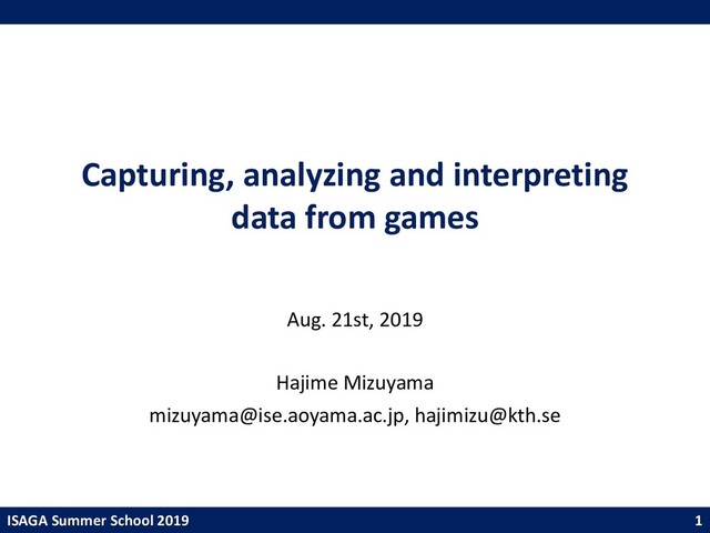 by using games applicable to the reality? • What to measure and how? • Are statistical methods suitable/effective for analyzing game data? – Games often seem to involve chaotic (irreproducible) behaviors. – Game data tend to have large variances. – There may be too many outliers. – Distribution of the data does not seem to be stable. 41 Reluctantly yes. Since no perfect alternative exists, we cannot help but need to rely on it. We should use it with care.