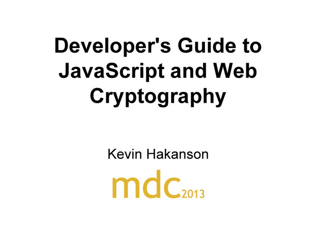 The increasing capabilities and performance of the web platform allow for more feature-rich user experiences. How can JavaScript based applications utilize information security and cryptography principles? This session will explore the current state of JavaScript and Web Cryptography. We will review some basic concepts and definitions, discuss the role of TLS/SSL, show some working examples that apply cryptography to real-world use cases and take a peek at the upcoming W3C WebCryptoAPI. Code samples will use CryptoJS in the browser and the Node.js Crypto module on the server. An extended example will secure the popular TodoMVC project using PBKDF2 for key generation, HMAC for data integrity and AES for encryption.