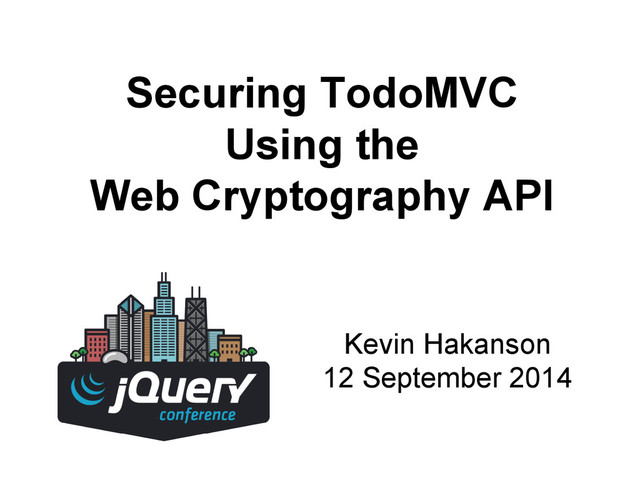 The open source TodoMVC project implements a Todo application using popular JavaScript MV* frameworks. Some of the implementations add support for compile to JavaScript languages, module loaders and real time backends. This presentation will demonstrate a TodoMVC implementation which adds support for the forthcoming W3C Web Cryptography API, as well as review some key cryptographic concepts and definitions.