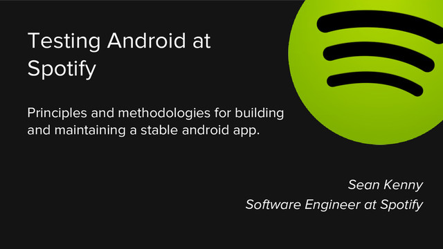 app. Testing Android at Spotify Sean Kenny Software Engineer at Spotify
