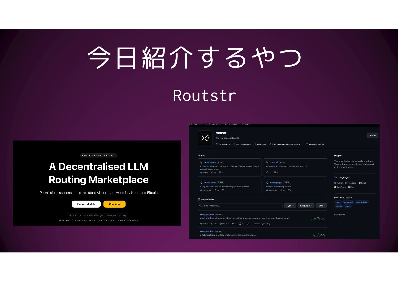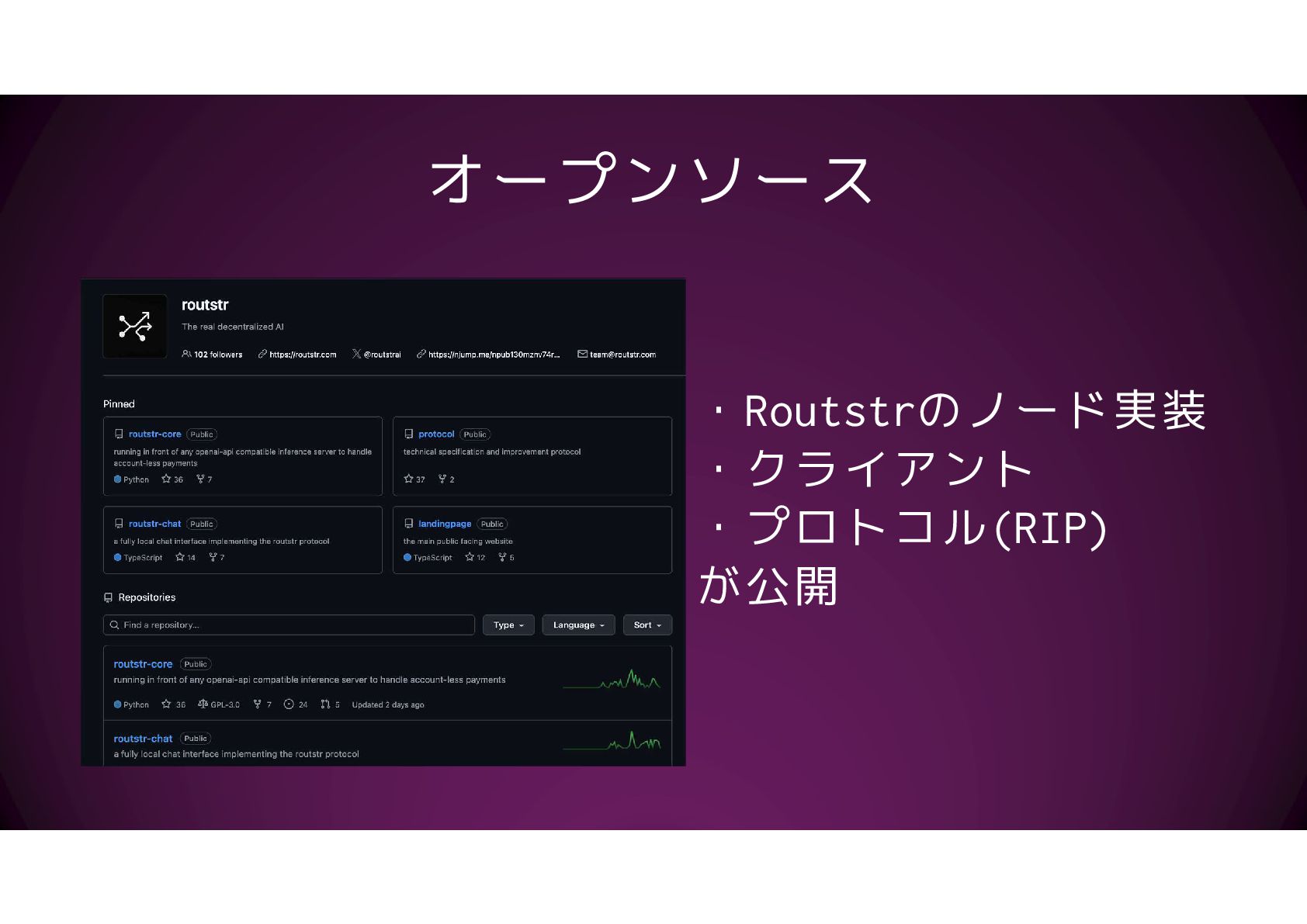 オープンソース ・Routstrのノード実装 ・クライアント ・プロトコル(RIP) が公開