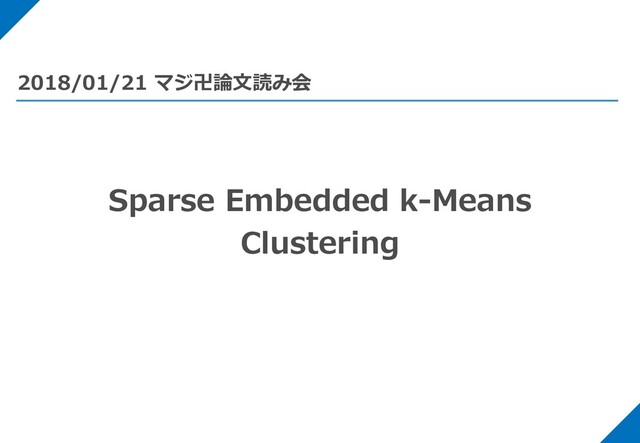 Sparse Embedded k-Means Clustering 2018/01/21 マジ卍論文読み会